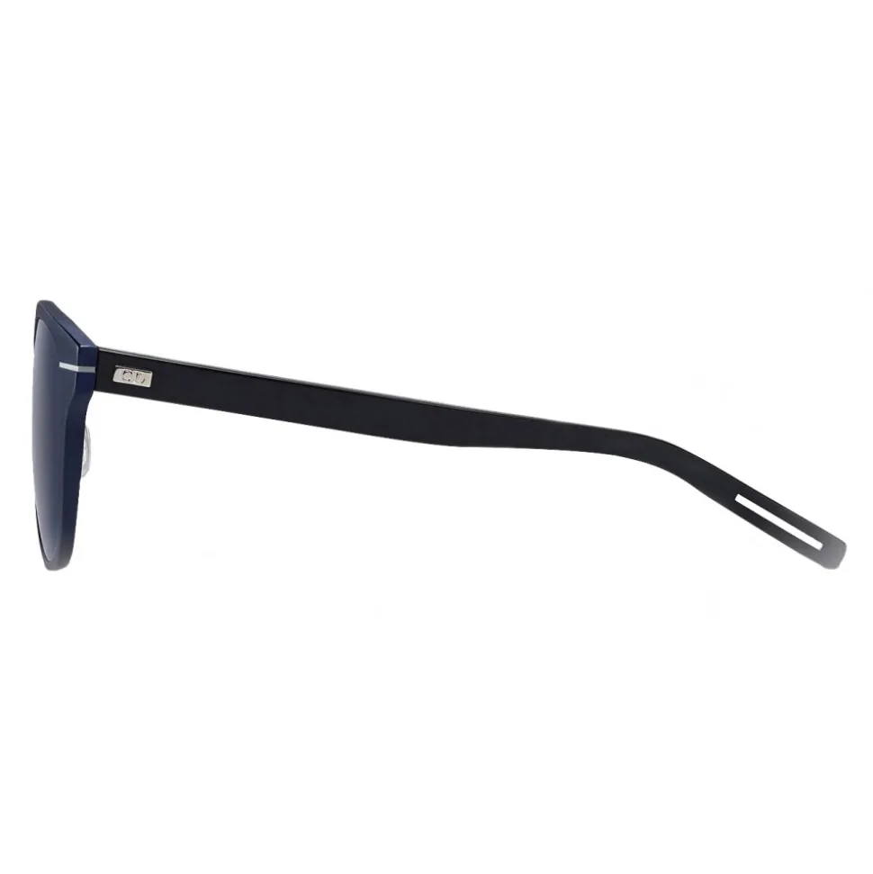With an opaque navy blue aluminum front and thin temples in black acetate, the “AL13.5” sunglasses are inspired by the minimalist style of Dior Homme. The pantos shape is enhanced by gray contrasting details that interpret the emblematic scar of Dior Homme.