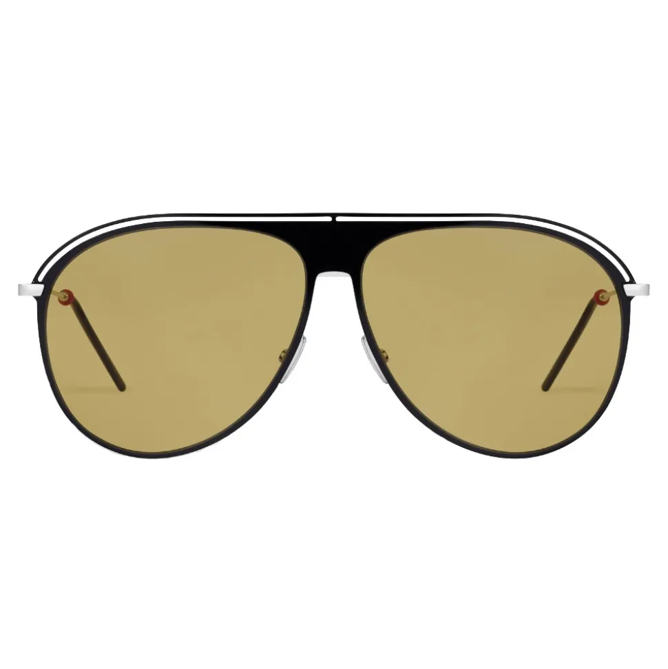 “Dior0217S” sunglasses in ultra-thin aviator shape in black and silver lacquered metal. On the upper part of the frame there is the emblematic perforated scar. The thin metal temples are embellished with a delicate red detail that makes this model extremely refined.