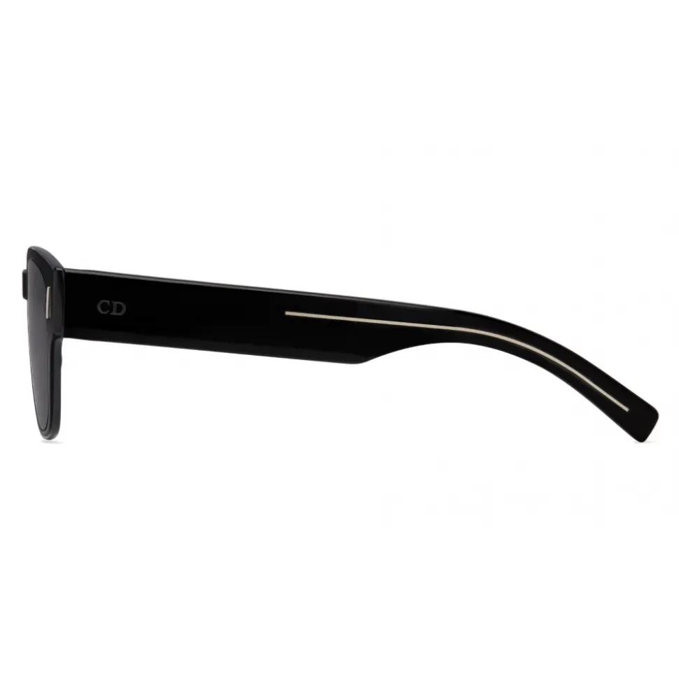 DiorFraction3 square sunglasses. The technically innovative front has been slimmed down as much as possible for a lightweight, resistant result. The black tone-on-tone frame and gray lenses are easily identifiable through the iconic cut on the temples.
