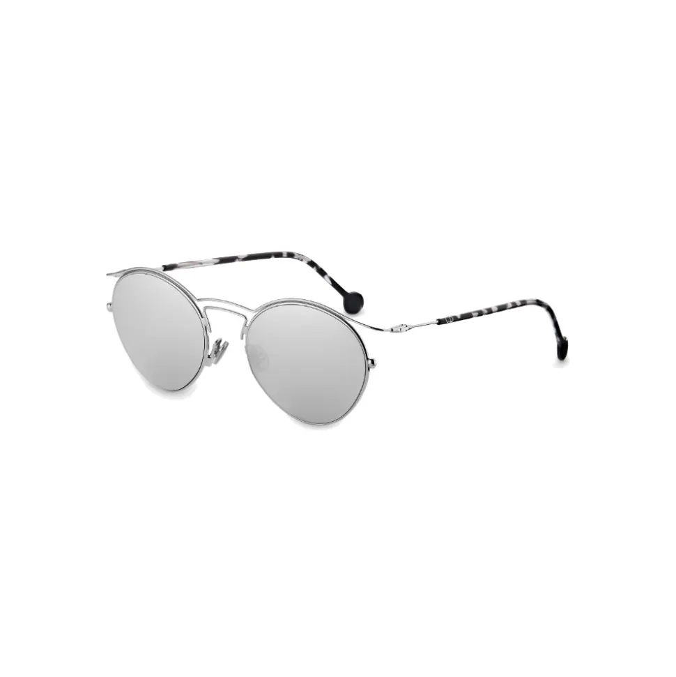 The DiorOrigins1 sunglasses are distinguished by their ultra-light frames. The silver metal front is decorated with a pierced bridge, which emphasizes the rounded lenses. The silver metal and black acetate temples follow the eyebrow line.