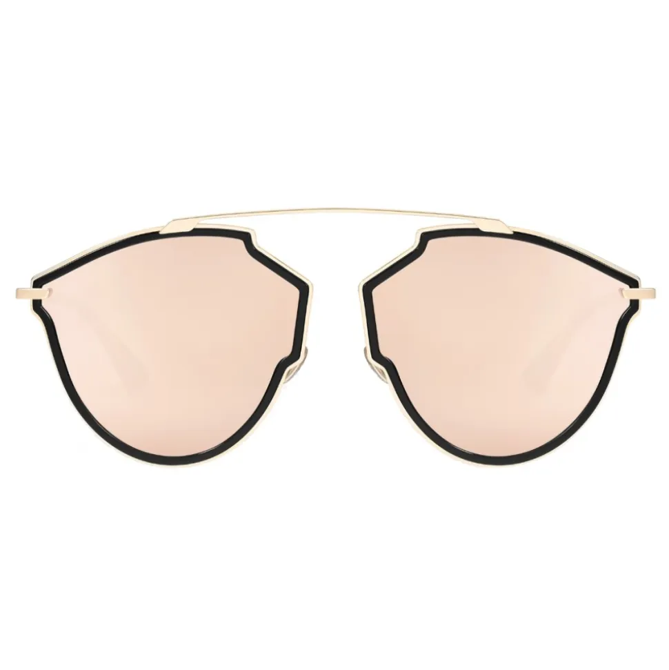 The DiorSoRealRise sunglasses reinterpret the iconic DiorSoReal shape in a lightweight oversized technical version. The pink gold mirror lenses are underlined by a black acetate frame inserted in the ultra-thin metal of the frame.
