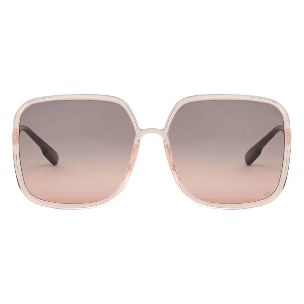 The oversized square-shaped DiorSoStellaire1 sunglasses reinterpret the emblematic silhouette of the DiorStellaire1 model in a completely acetate version. The transparent rounded pink frame underlines the delicate shaded effect of the lenses ranging from gray to pink.
