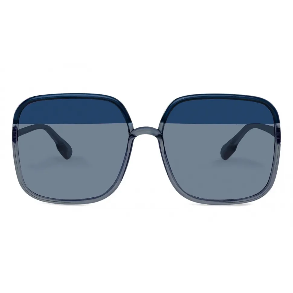With their oversized square shape, the DiorSoStellaire1 sunglasses reinterpret the iconic shape of the DiorStellaire1 in an all-acetate version. The rounded frame and the lenses feature a tone-on-tone bayadere effect in navy blue and light blue.