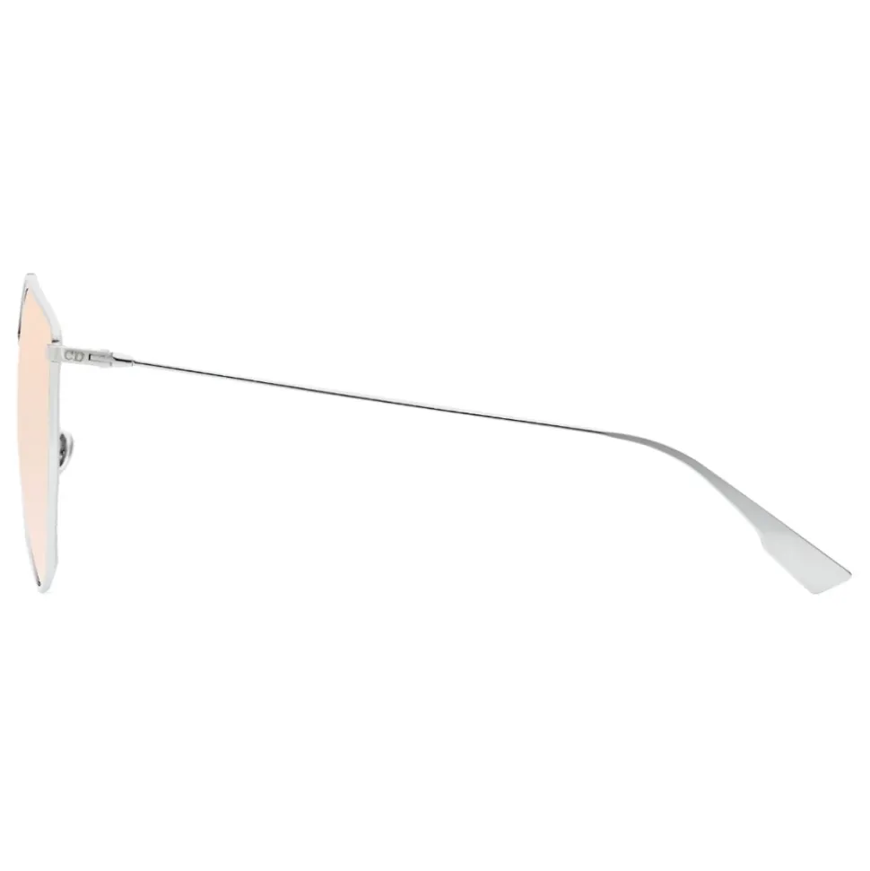 The DiorStellaire4 sunglasses are distinguished by their oversized geometric shape and the elegant double crossed bridge that gives the model a femininity and sophistication. The ultra-thin frame in gold metal highlights the almost flat silver mirror lenses.