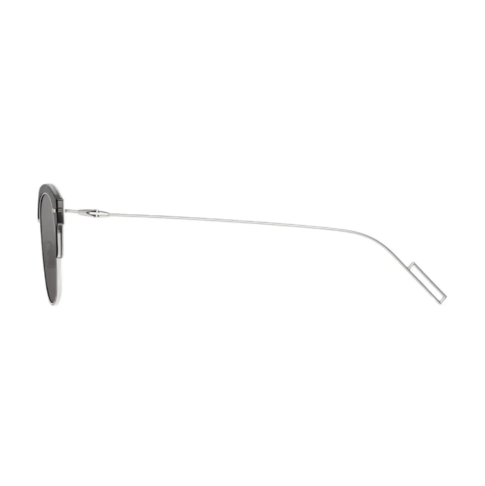 Square “DiorTensity” sunglasses. Silver metal frame embellished with a black ultra-thin acetate insert. The thin, perforated silver metal temples give a glimpse of the emblematic scar of Dior Homme.