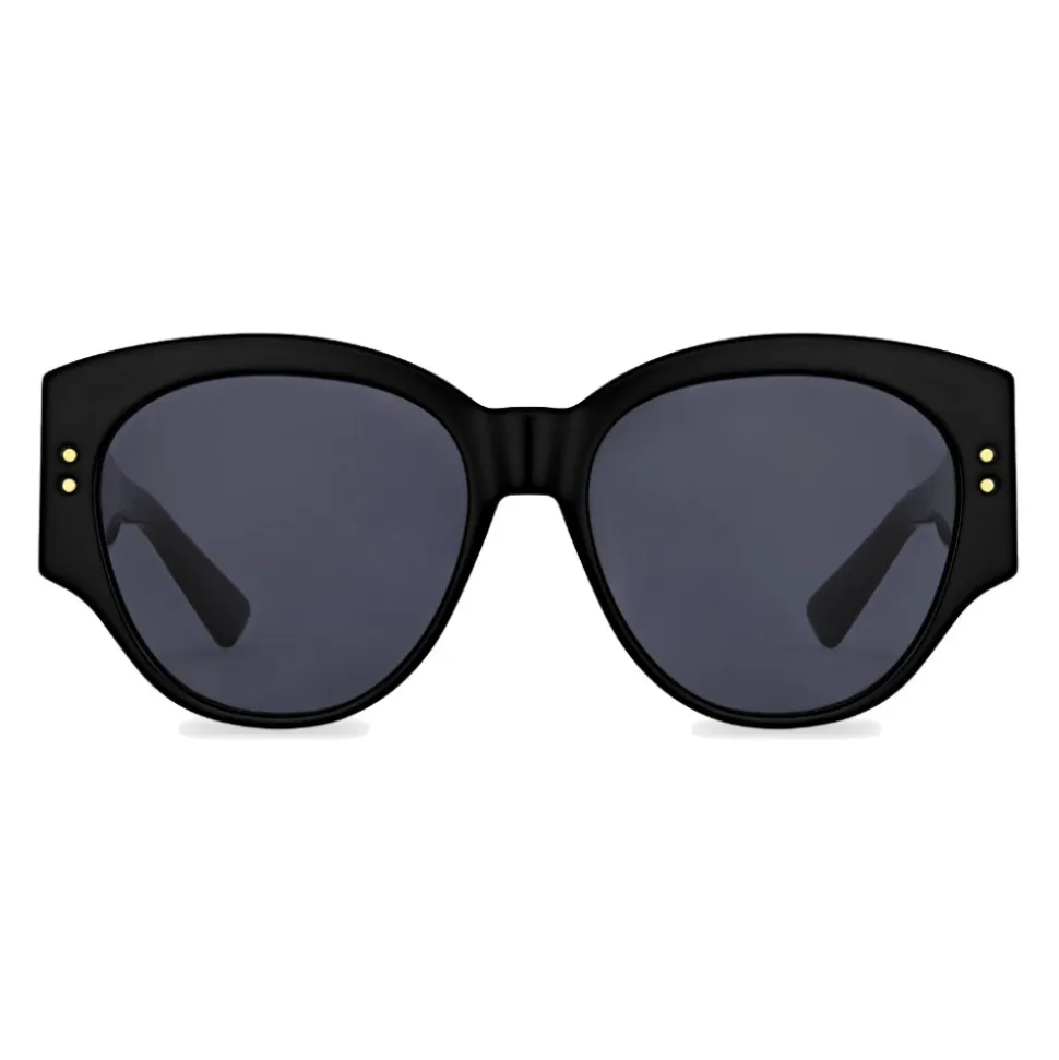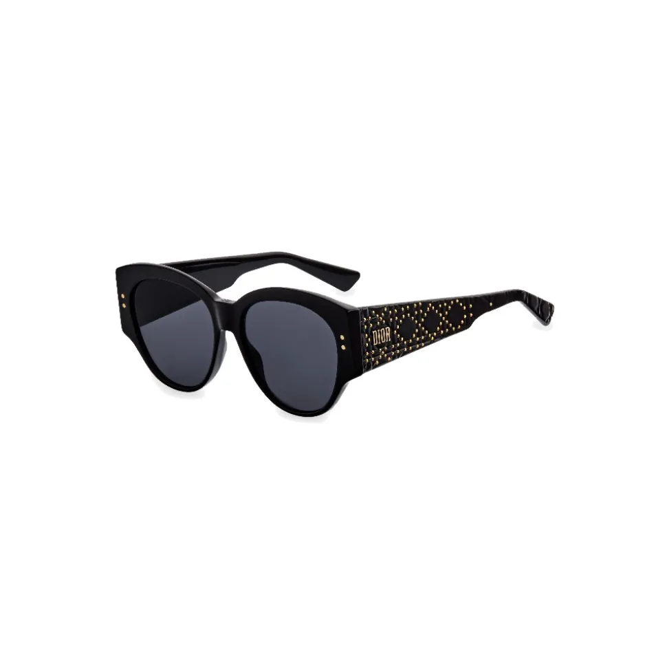 With their elegant oval shape, LadyDiorStuds2 sunglasses reinterpret the Cannage motif. The front in black acetate is combined with wide temples decorated with the DIOR logo and with the emblematic Cannage motif of the Maison, on which 200 gold studs are set by hand.