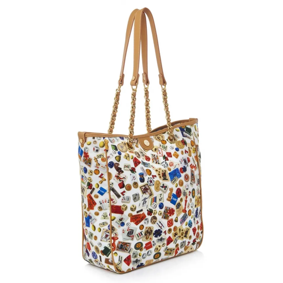 Flat calf leather handles with metal chains.
