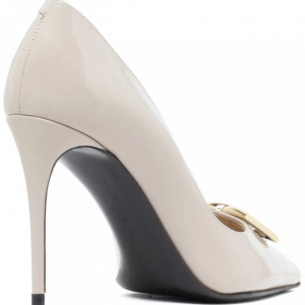 Dolce & Gabbana Beige Lollo Pumps. Beige polished calfskin pump with DG logo cut out. Kidskin insole with branded label, branded leather sole, 90 mm heel.