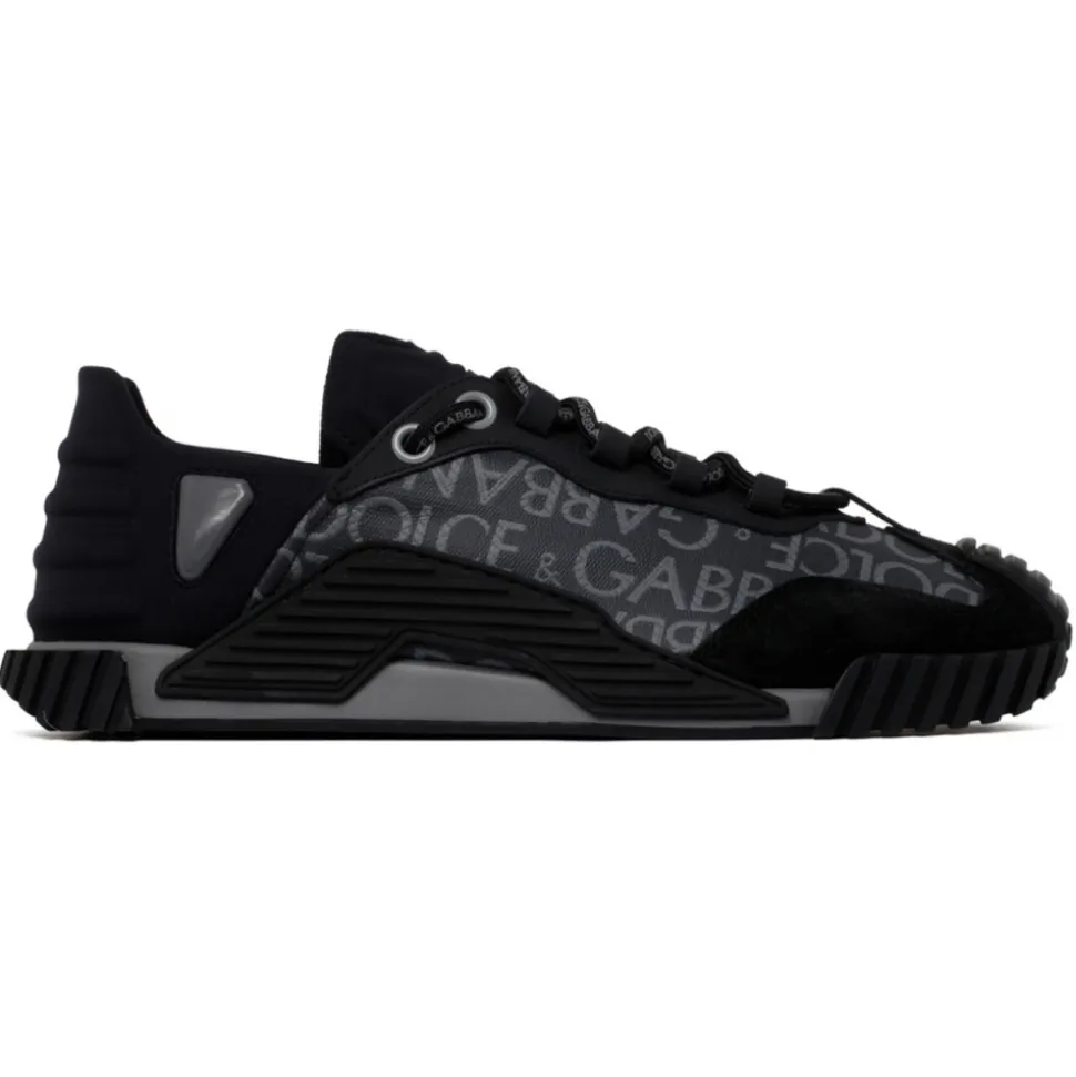 Dolce & Gabbana Black and Grey Calf Leather NS1 Sneakers. Black and grey calf leather sneakers, ombré effect, jacquard logo motif, panelled design, front lace up fastening, round toe, flat rubber sole.