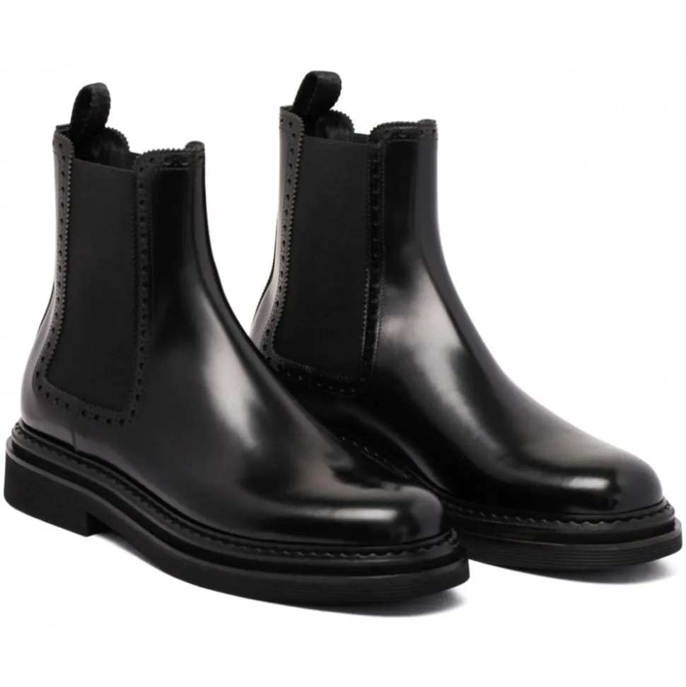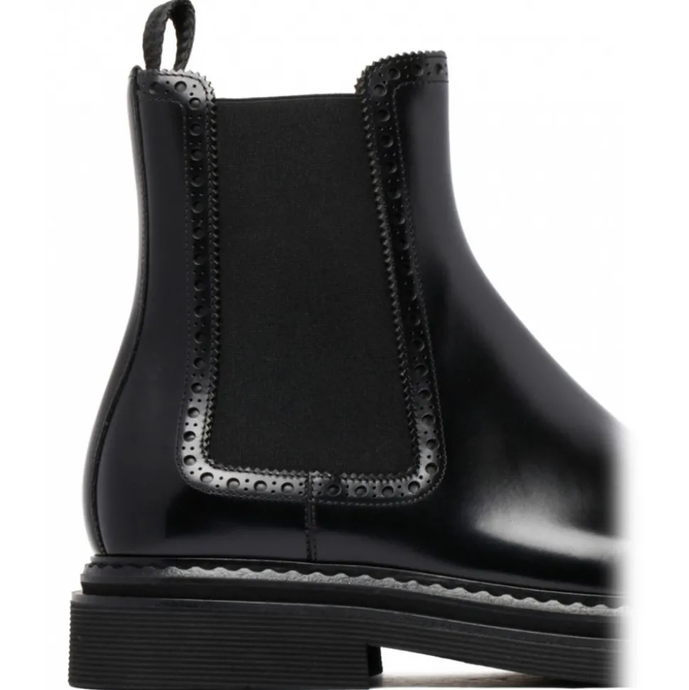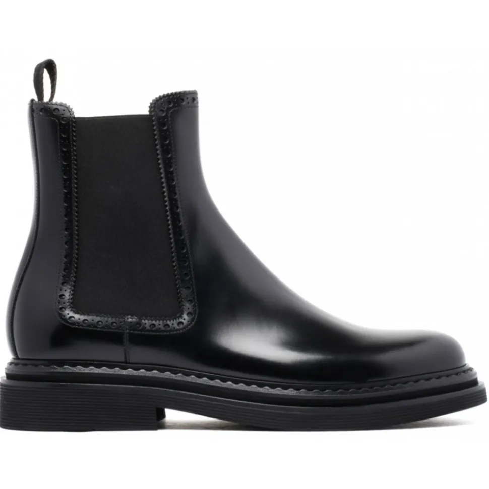 Dolce & Gabbana Black Boots. Black leather boots, rubber sole, elasticated side panels. Pull tab at the heel, round toe, ankle length.