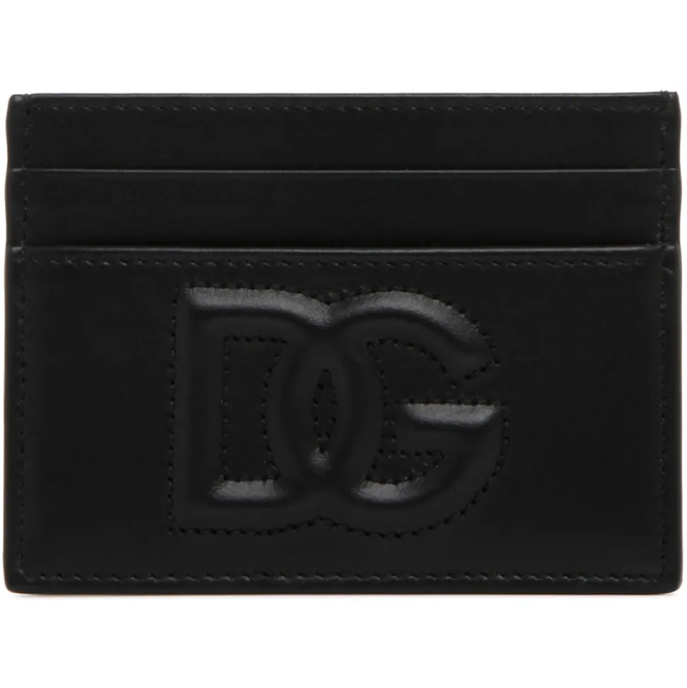 Dolce & Gabbana Black Calf Leather Embossed Logo Cardholder. Black calf leather cardholder, embossed logo to the front, card slots, rectangle frame.