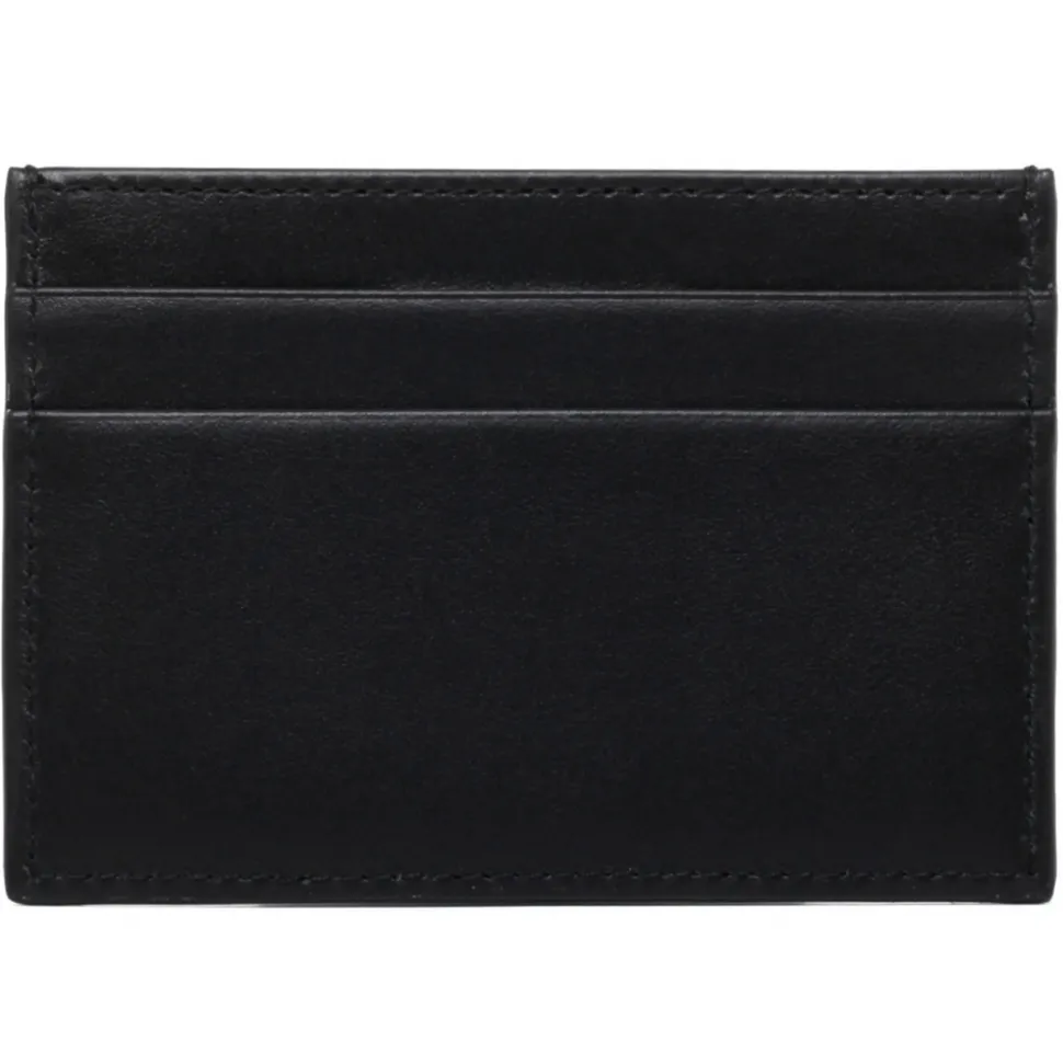 Dolce & Gabbana Black Calf Leather Logo Plaque Cardholder. Black calf leather cardholder, two credit card slots and one on top, three dimensional logo plate.