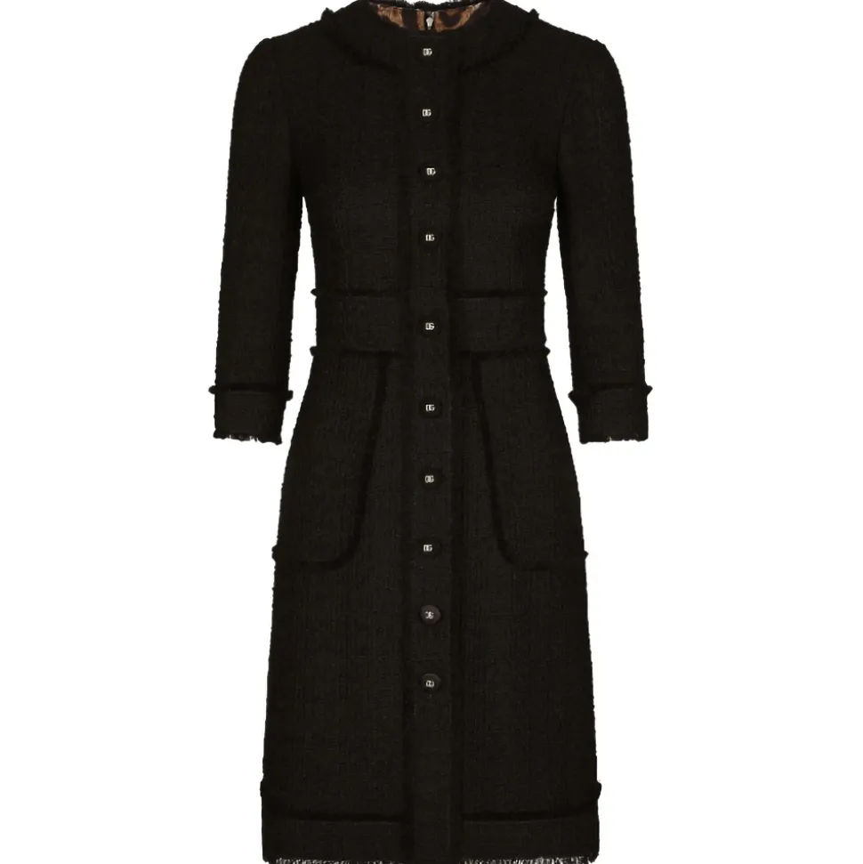 Dolce & Gabbana Dress Black, round neckline, three-quarter sleeves, lined in leopard print stretch satin, rear zip and hook closure