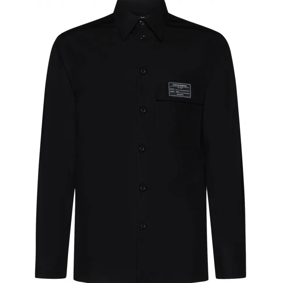Dolce & Gabbana Shirt Black, classic shirt collar, long sleeves, buttons closure, pockets with logo on heart