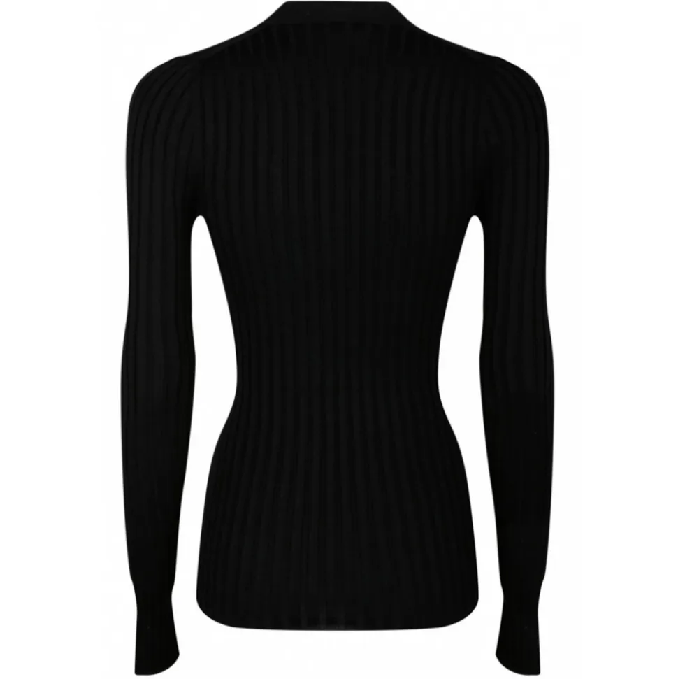 Dolce & Gabbana Black Wool Sweater. Black wool flat rib sweater, V neck with small buttons, long sleeves, slim fit.