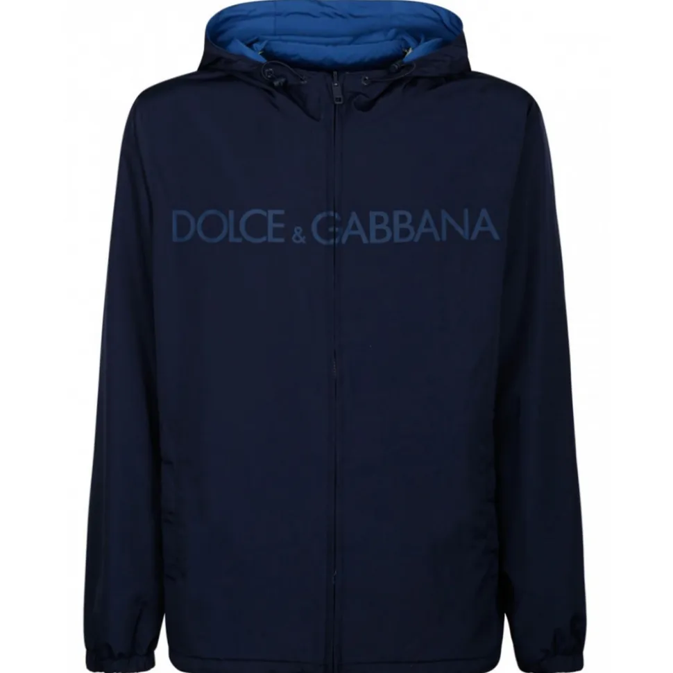 Dolce & Gabbana Blue Reversible Jacket. Blue reversible technical fabric jacket, drawstring hood, zipper fastening. Concealed press stud buttons on pockets adjustable drawstring hem.