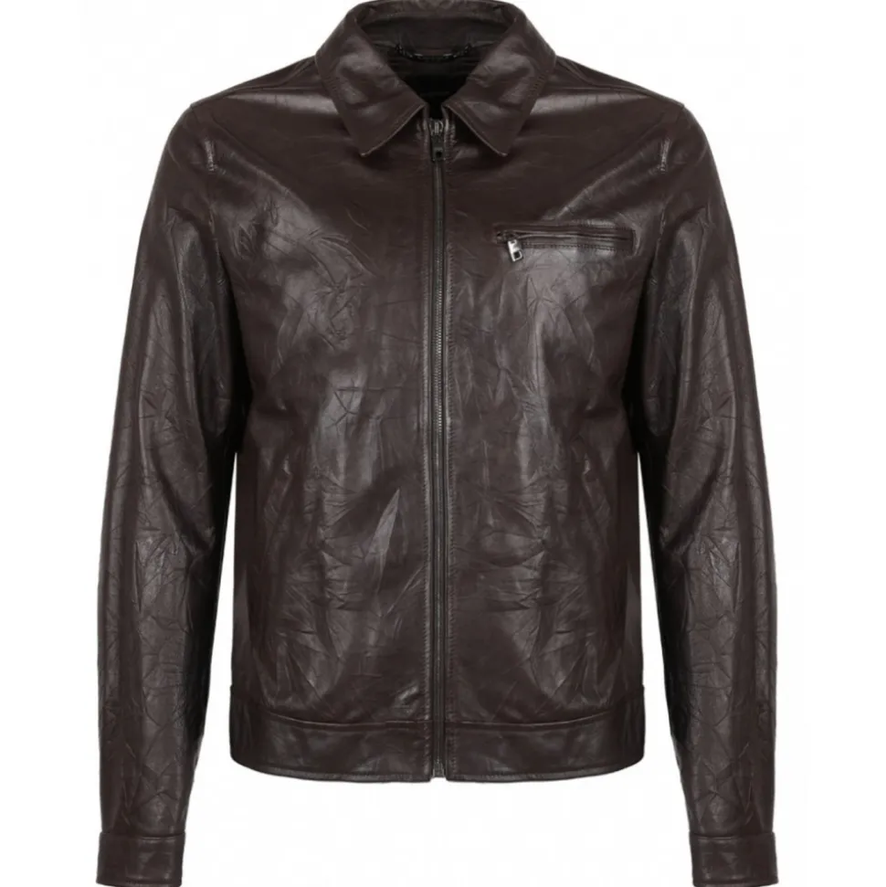 Dolce & Gabbana Brown Leather Jacket. Brown sheepskin jacket, silk lining, zip fastening. Classic collar, zip fastening chest pocket, long sleeves, straight hem.