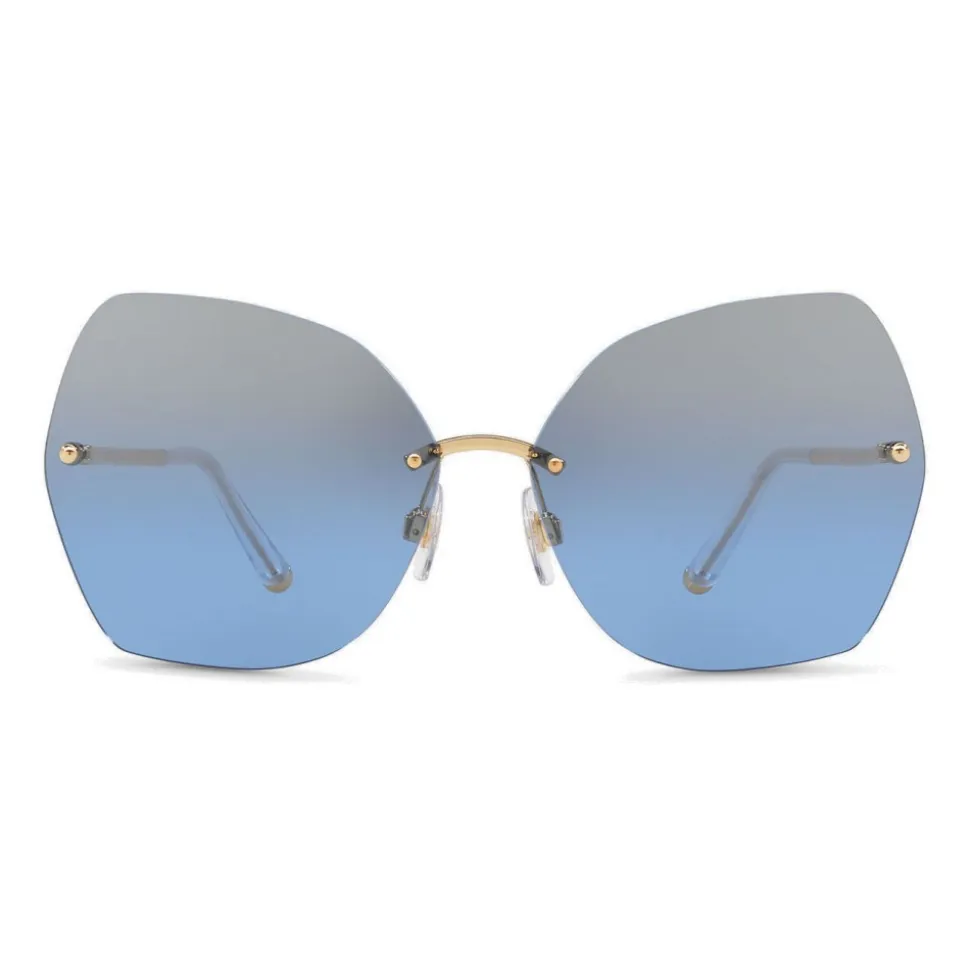 Butterfly-shaped sunglasses embellished with metallic details and a metal bridge. Dolce & Gabbana logo finely engraved on metal temples.