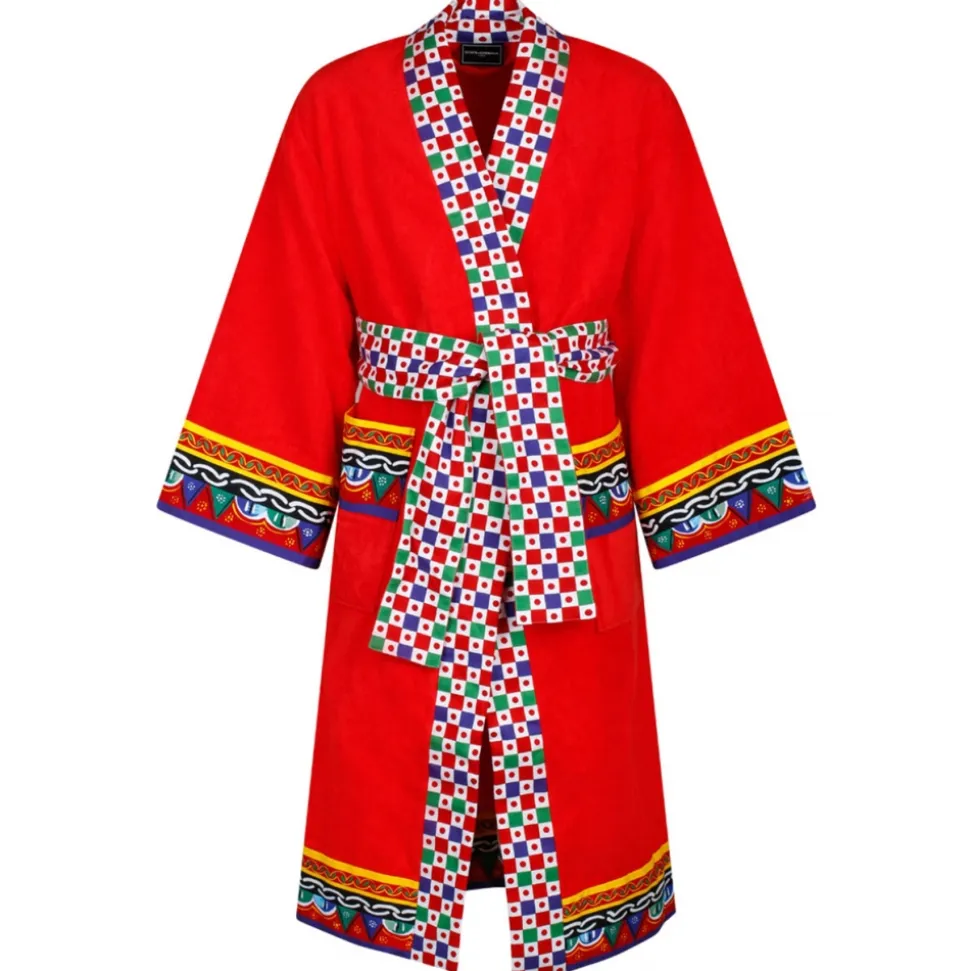 Dolce & Gabbana – Carretto Sciliano Printed Trim Bathrobe – Dolce & Gabbana Exclusive Luxury Collection