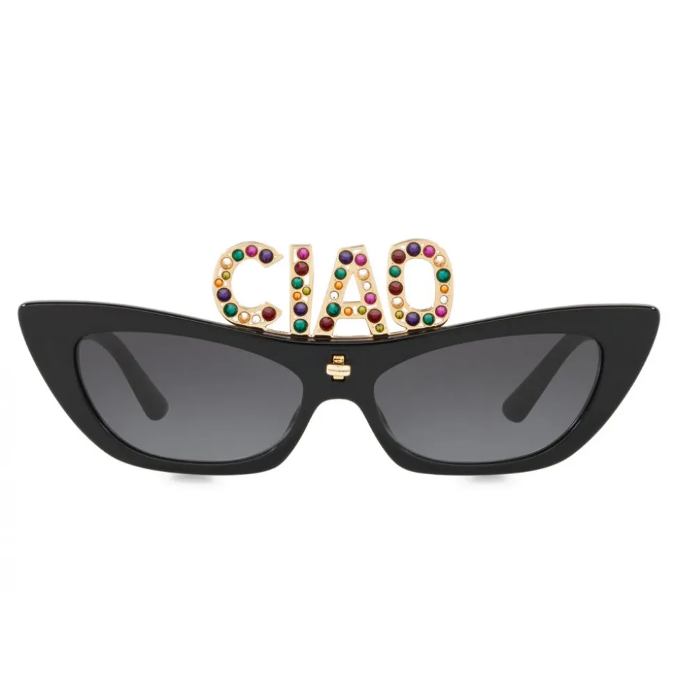 Frame in black acetate with clip-on “DG” or “CIAO” embellished with crystals