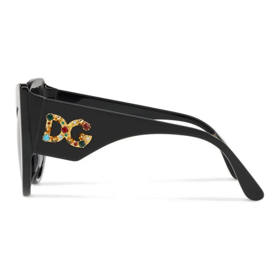 The temples are embellished by the “DG” logo featuring precious stones and metallic details.