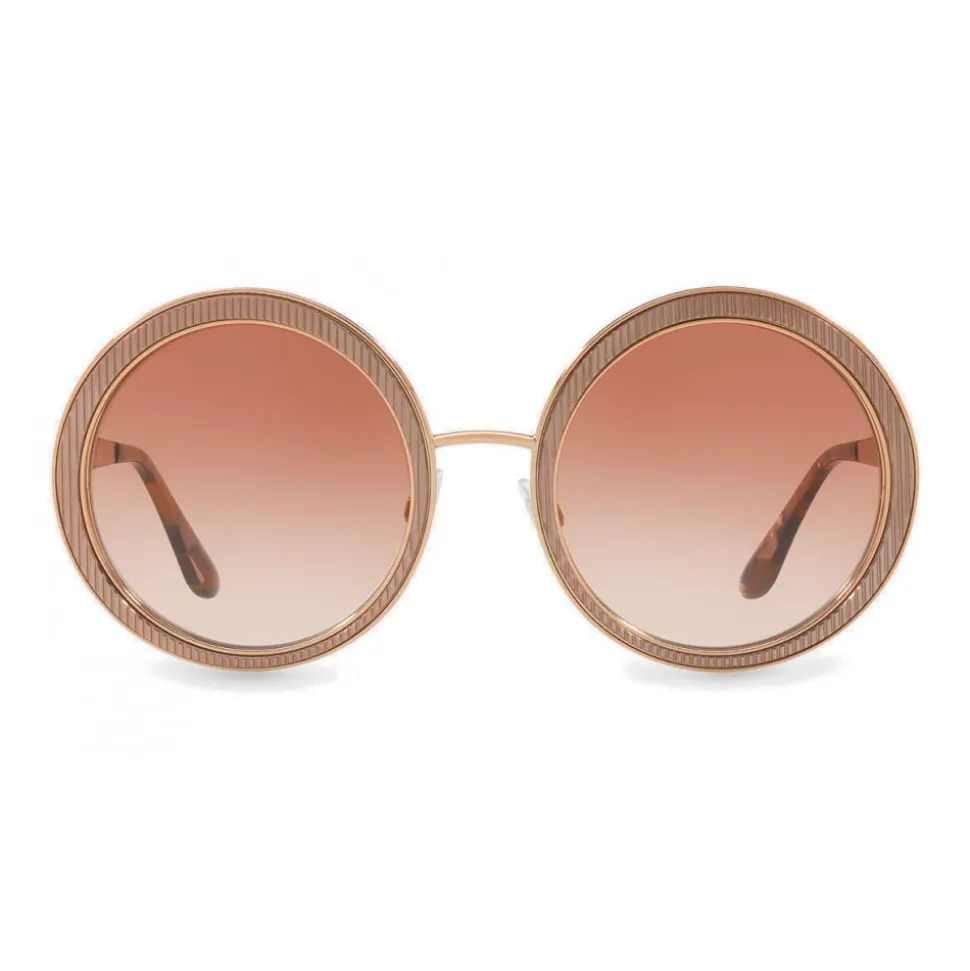 Round sunglasses with thin metal temples featuring the engraved Dolce & Gabbana logo. The front is decorated with the new grosgrain decoration. Comfort is guaranteed by adjustable nose pads.