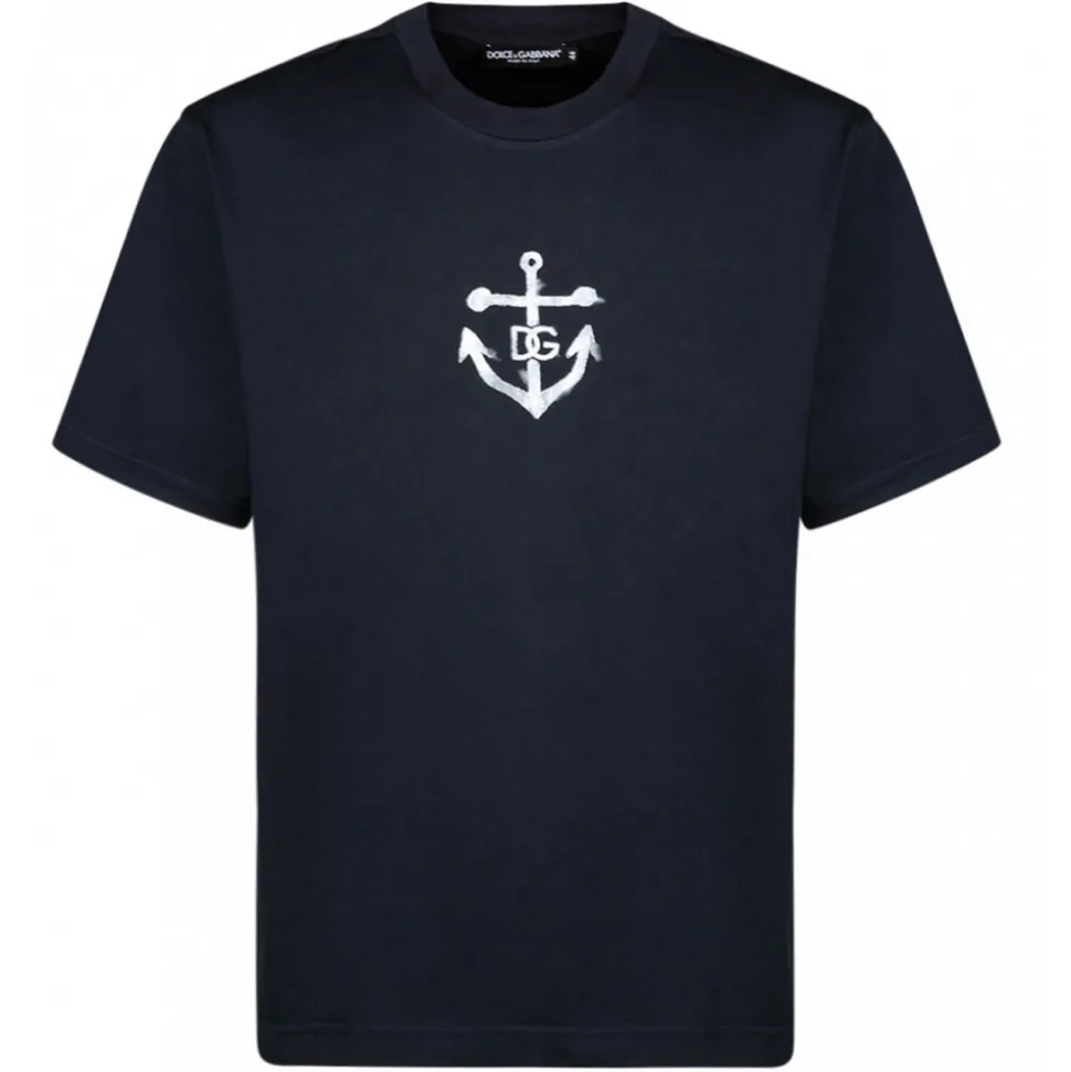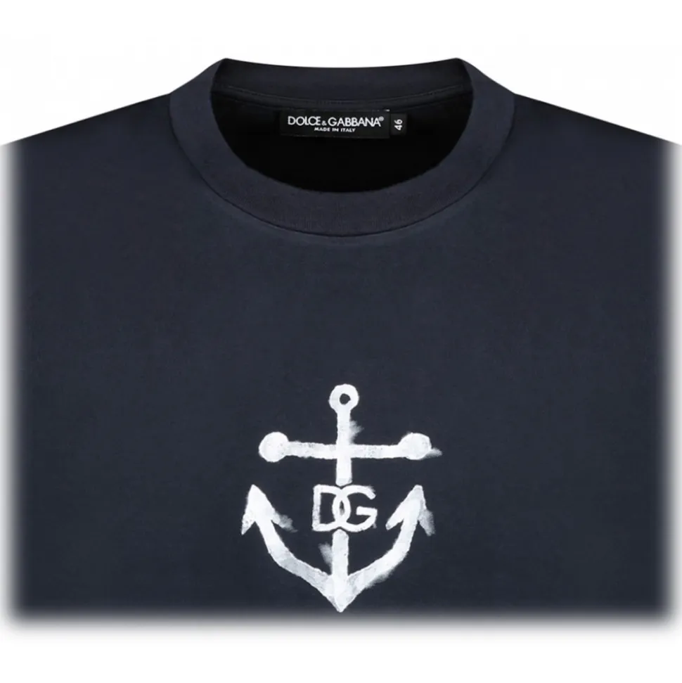 Dolce & Gabbana – Dark Blue Navy Print T-Shirt – Dolce & Gabbana Exclusive Luxury Collection