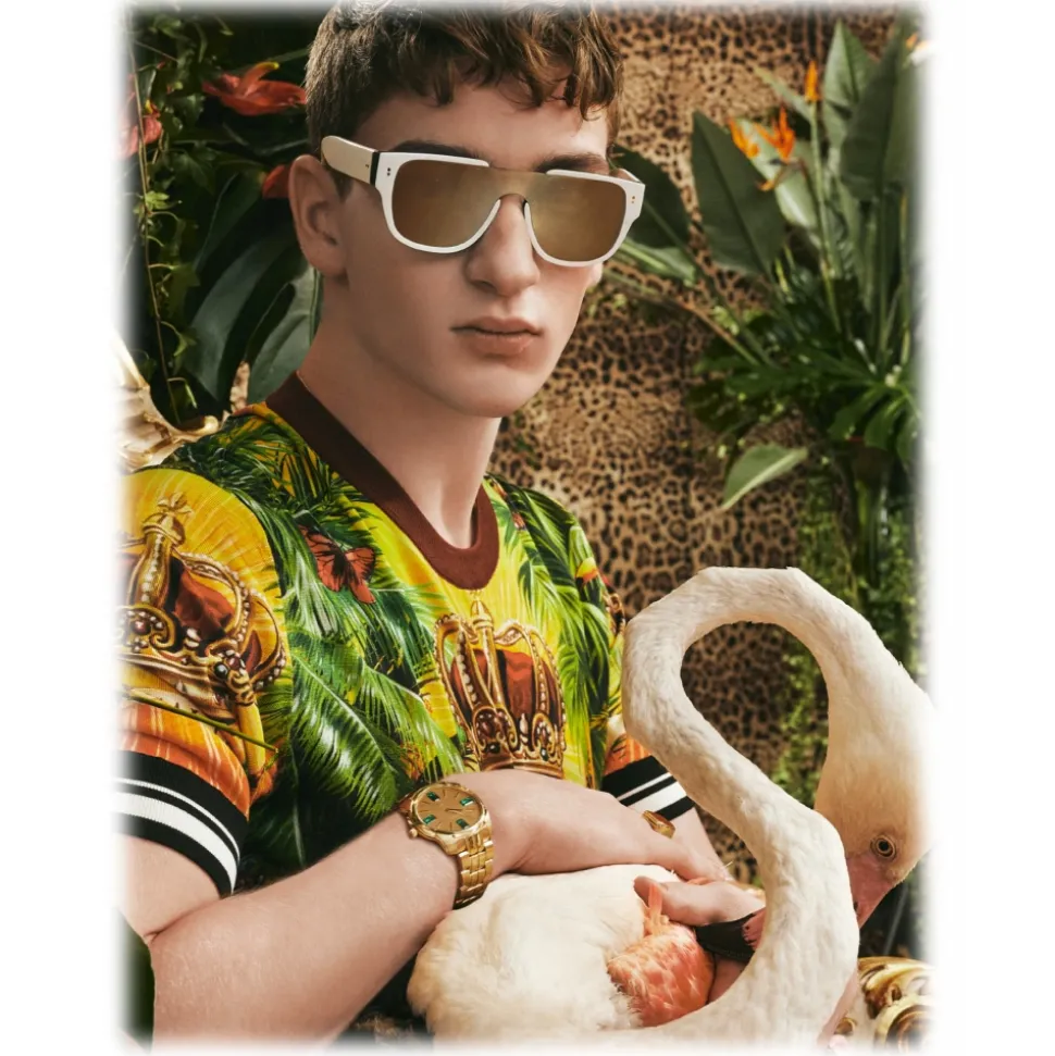 The Dolce & Gabbana creativity is reflected in fun graffiti-writings and colorful drawings in the shape of heart, stars or crowns reproduced on the temples and frames of the new sunglasses of the new collection. The new glasses, on the wave of a streetwear and contemporary style, stand out for their ironic and absolutely recognizable character.