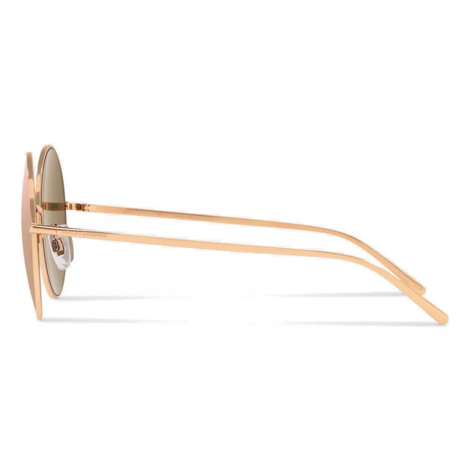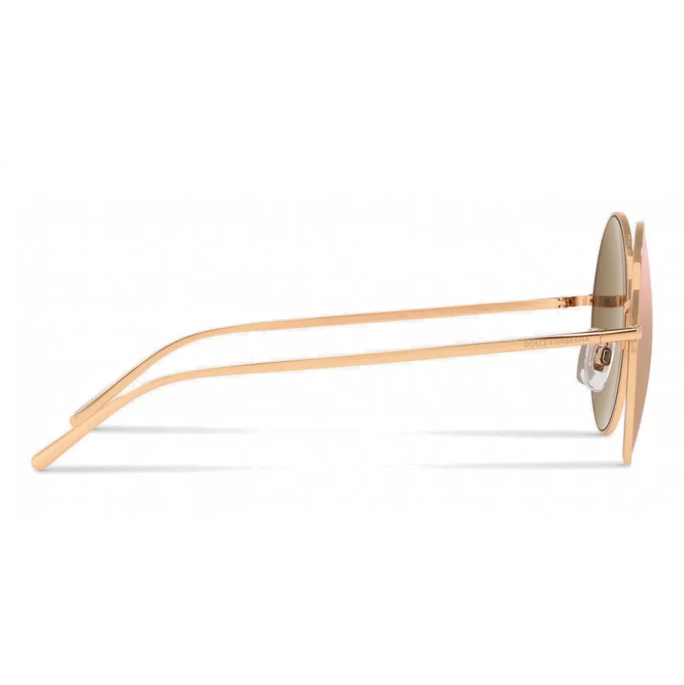 An unmistakable elegance distinguishes the new precious collection of Dolce & Gabbana gold plated sunglasses. Metal sunglasses with a round shape and a clean and contemporary design. The model, offered in a precious Gold Capsule in the three 18 kt golds, white, pink and yellow, is combined with lenses with an 18 kt gold coating. The nose pads are adjustable for perfect fitting and greater comfort.