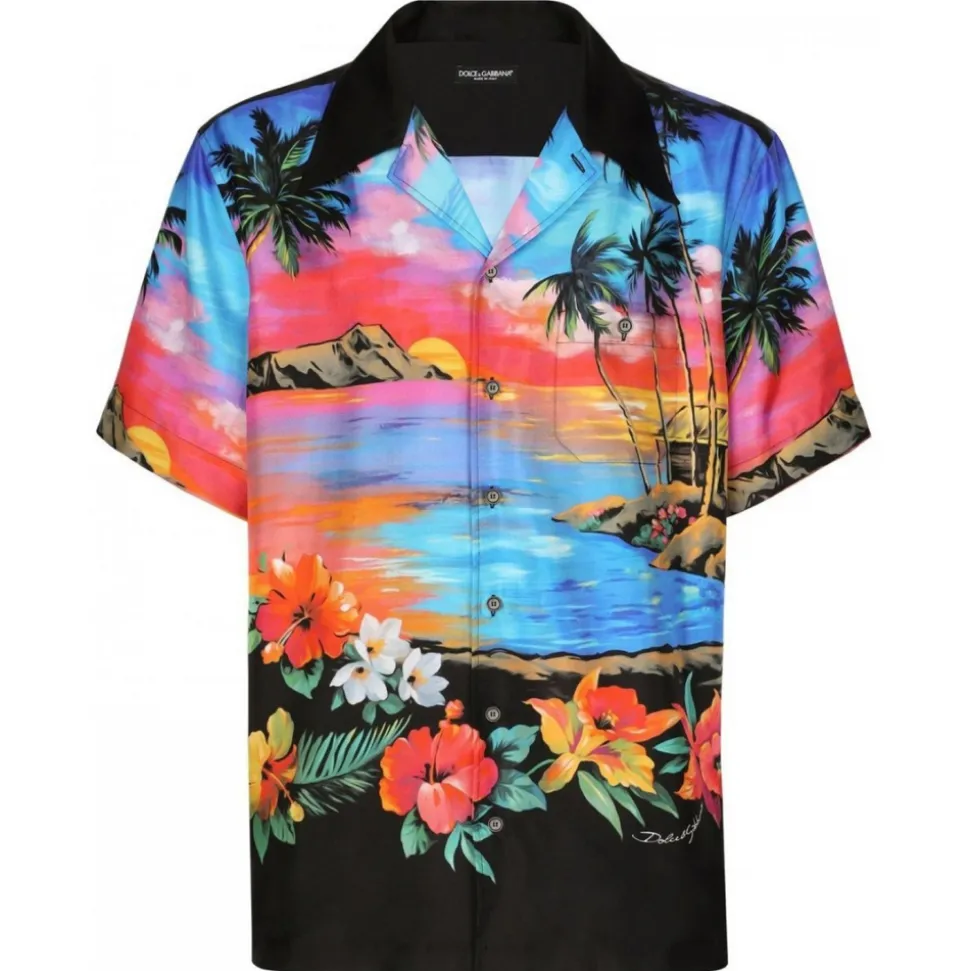 Dolce & Gabbana – Hawaii Silk Graphic Print Short Sleeve Shirt – Dolce & Gabbana Exclusive Luxury Collection