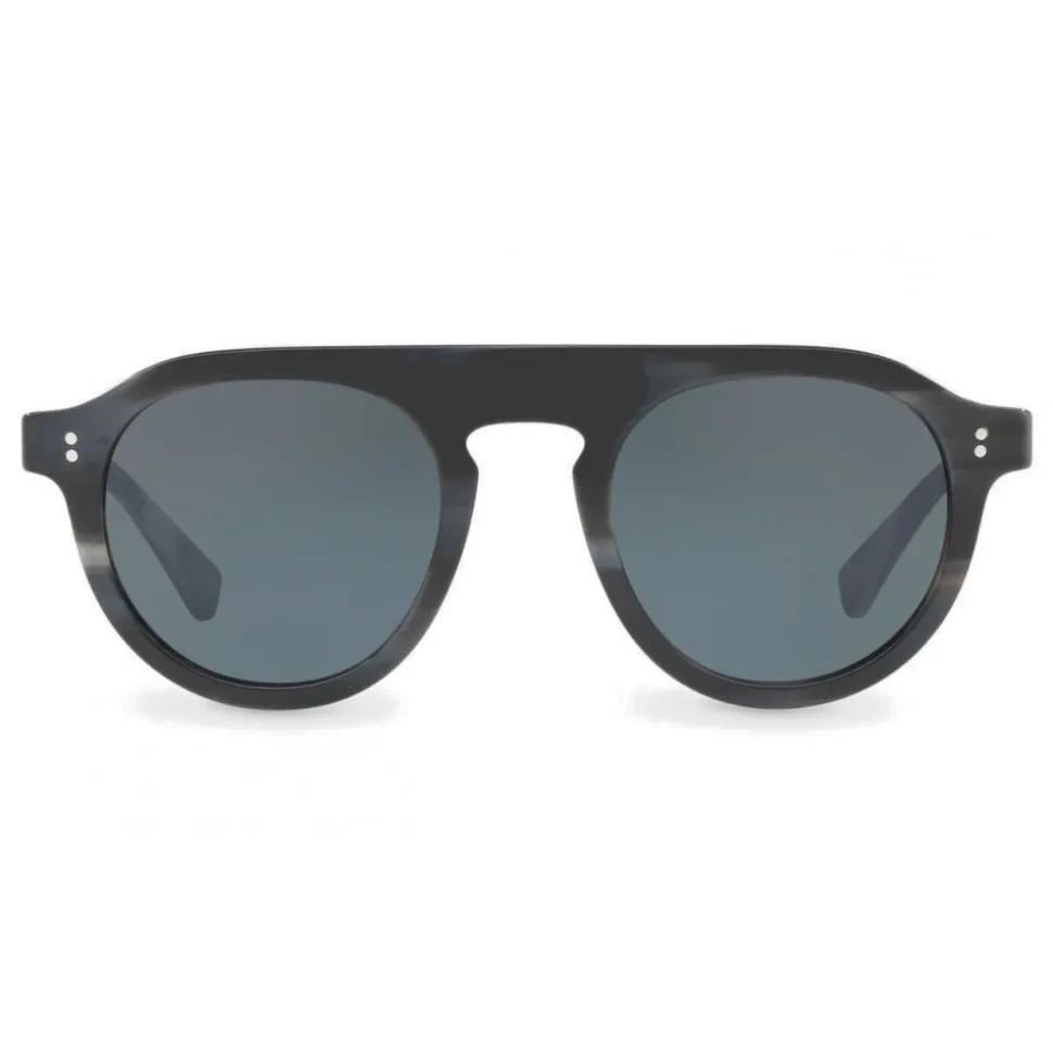 Panthos sunglasses with an acetate frame with bold lines. The model is distinguished by the keyhole bridge topped by a front bar. It is embellished with rivets and crystal lenses. The temples are personalized with the Dolce & Gabbana logo and the metallic detail on the terminal.