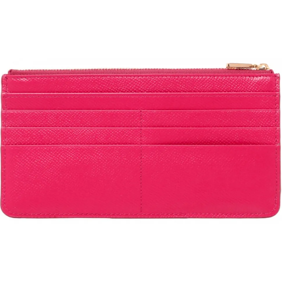 Dolce & Gabbana Pink Logo Plaque Wallet. Pink calf leather wallet, top zip fastening, logo plaque, card slots.