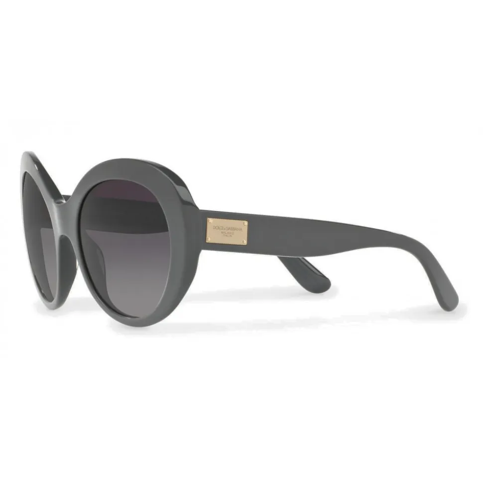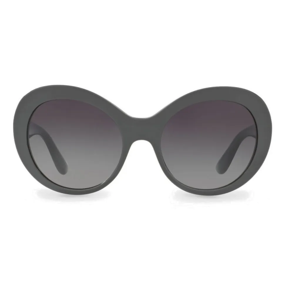 Sunglasses in acetate with a rounded shape characterized by temples signed by the new Dolce & Gabbana metal plaque logo.