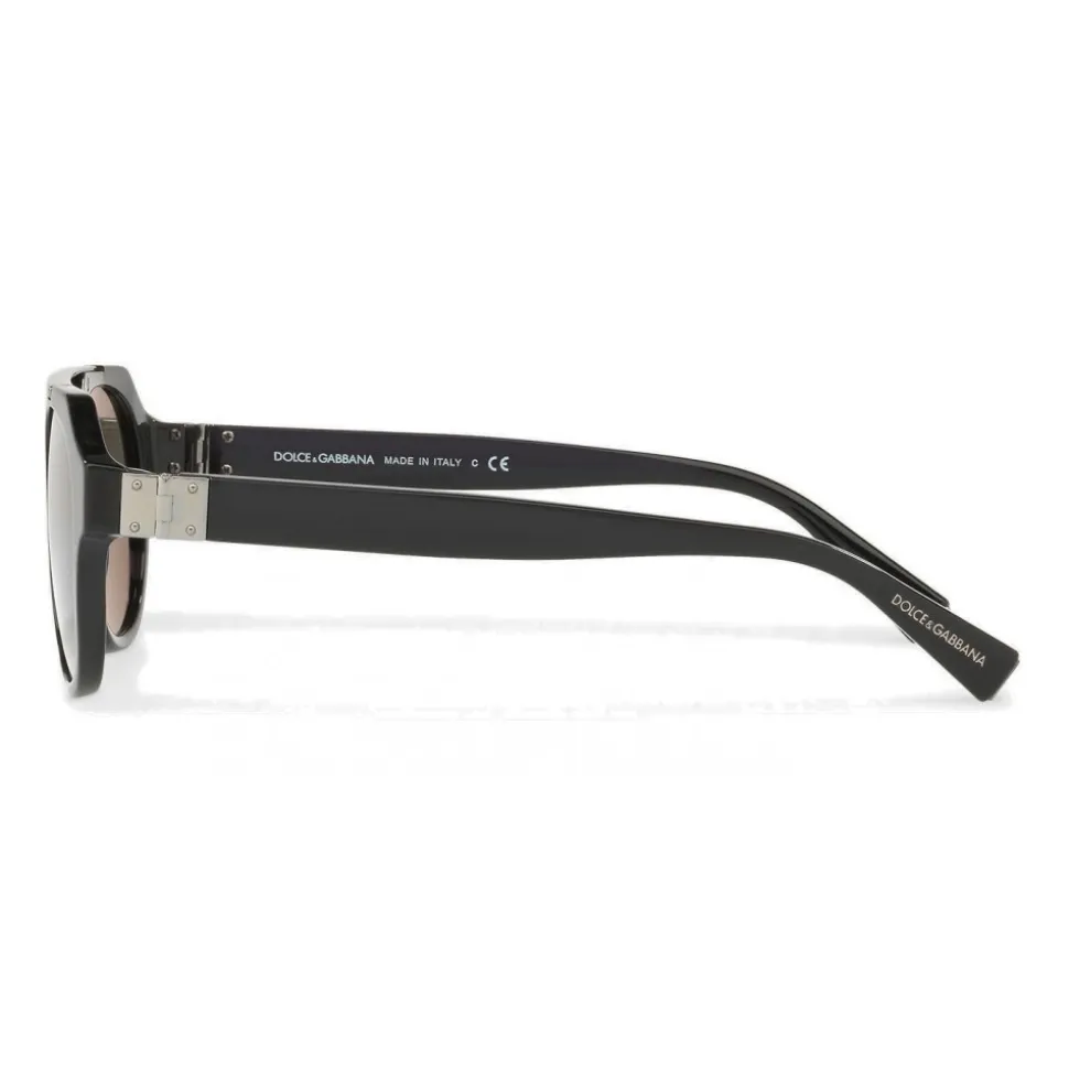 The temples are customized by functional zippers featuring the Dolce & Gabbana plaque logo and the resin logo on the terminal.