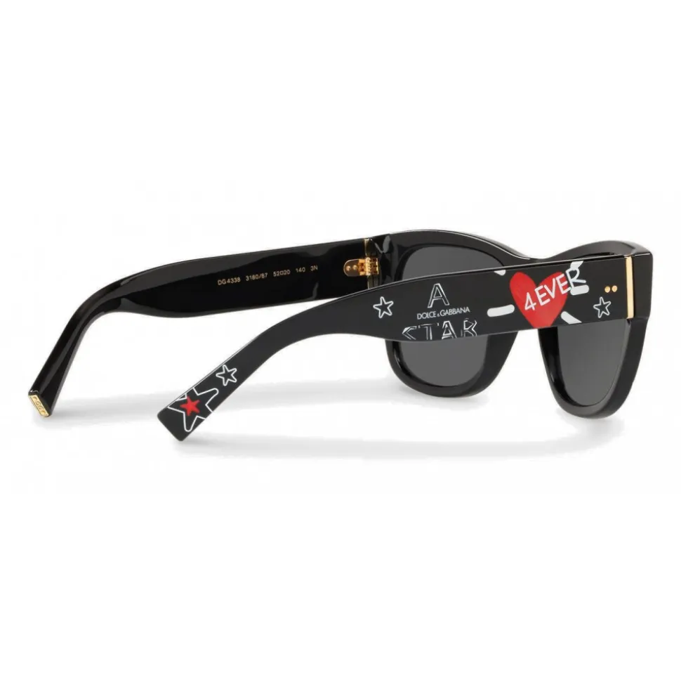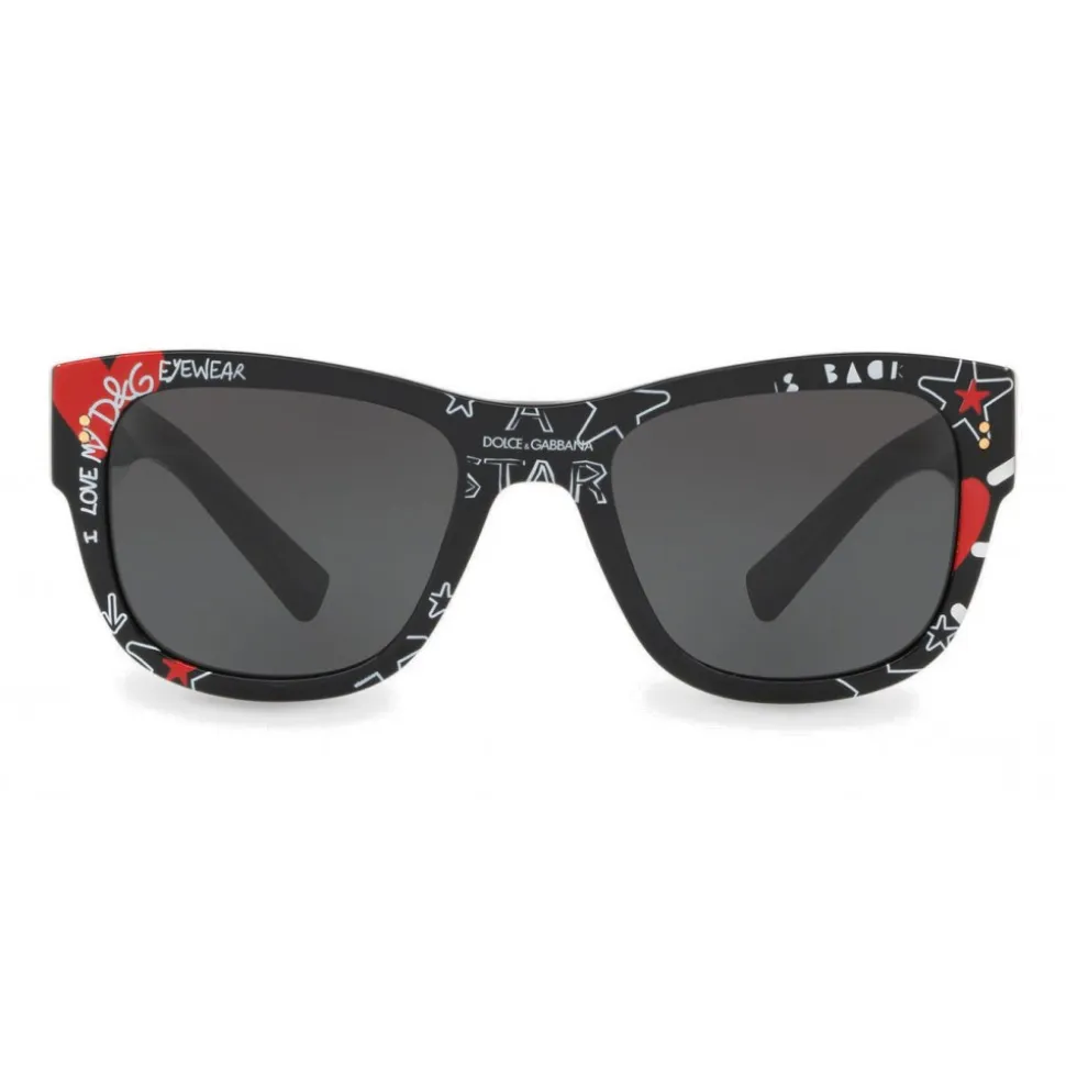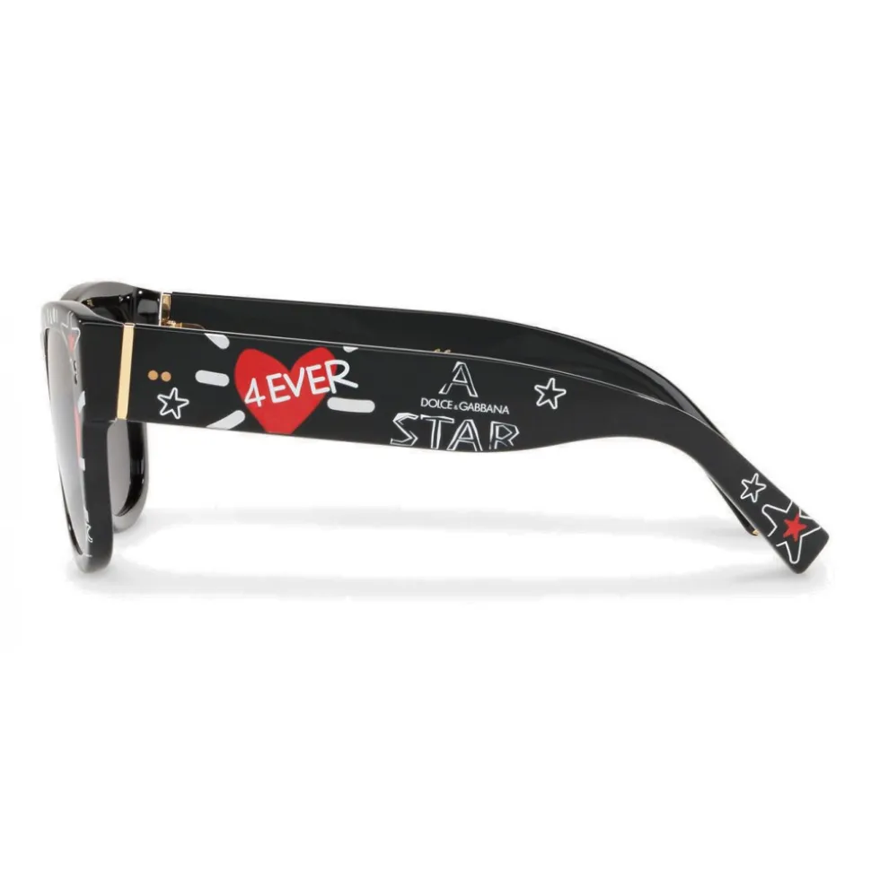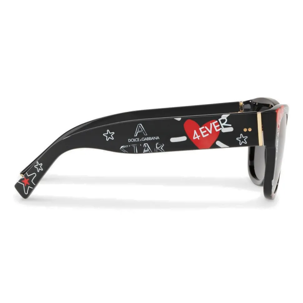 The Dolce & Gabbana creativity is reflected in fun graffiti-writings and colorful drawings in the shape of heart, stars or crowns reproduced on the temples and frames of the new sunglasses of the new collection. The new glasses, on the wave of a streetwear and contemporary style, stand out for their ironic and absolutely recognizable character.