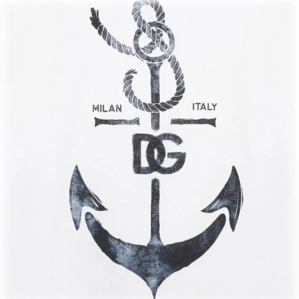 Dolce&Gabbana White Cotton T-Shirt With Print. Round neckline and short sleeves. Print with anchor and blue logo on the front.