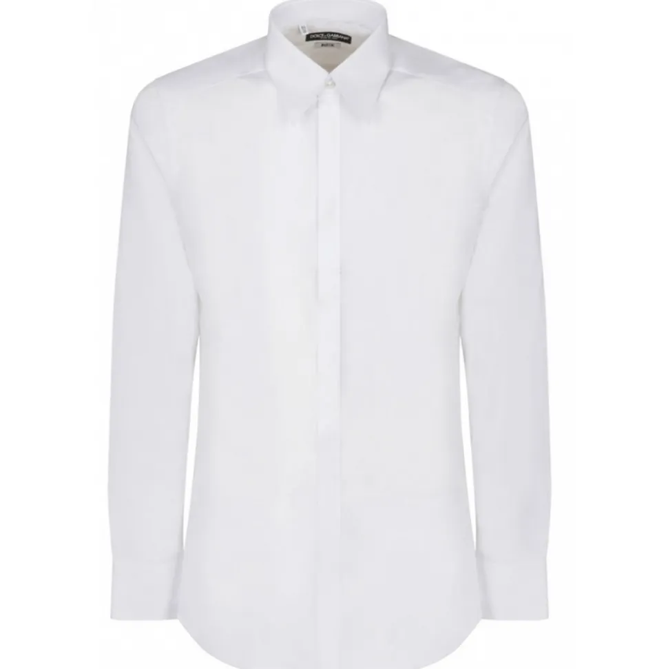 Dolce&Gabbana White Poplin Shirt with pointed collar, button closure, long sleeves with buttoned cuffs and rounded hem.