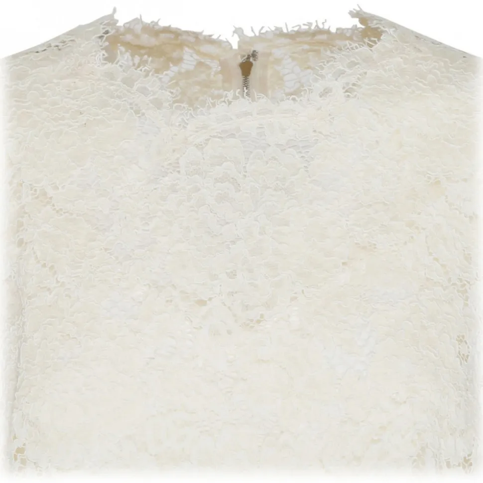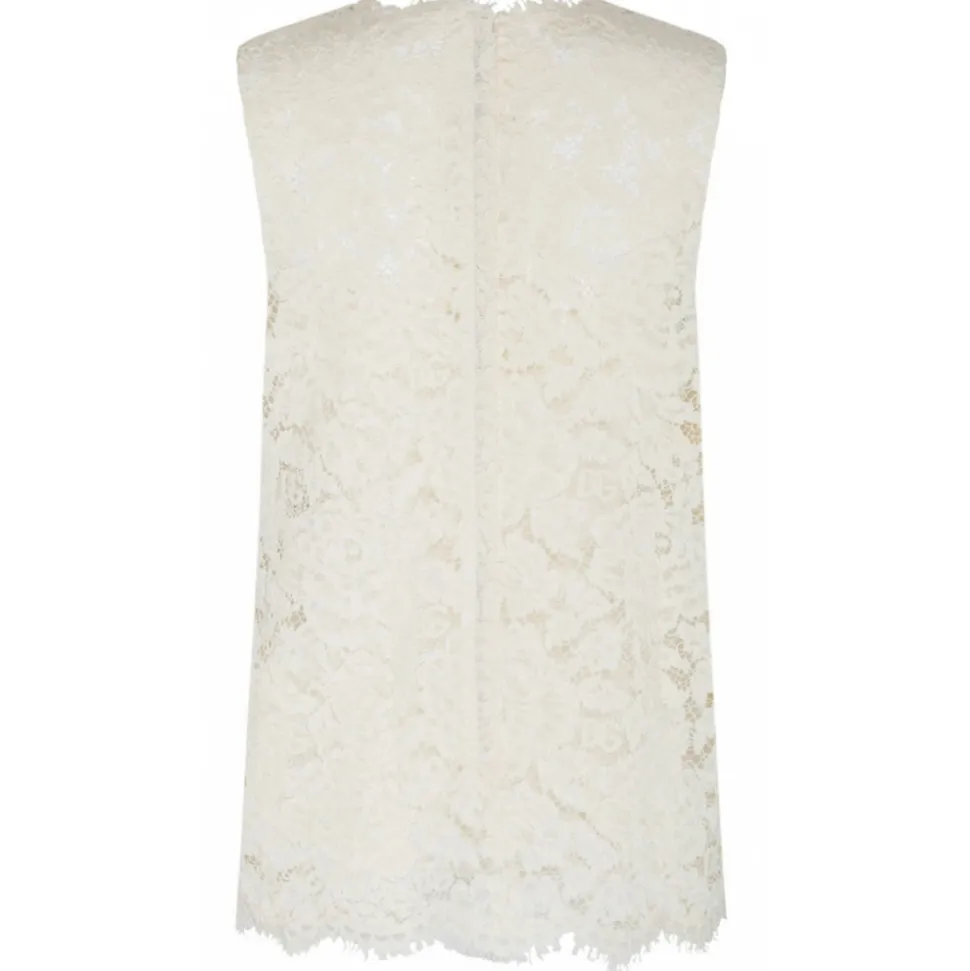Dolce & Gabbana White Semi Sheer Construction Top. White semi sheer construction top, all over floral lace, sleeveless.