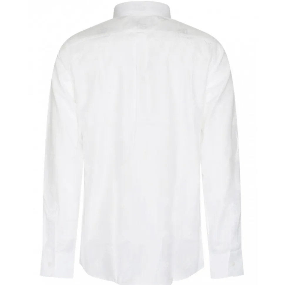 Dolce & Gabbana White Cotton Shirt. White cotton shirt, all over logo print, long sleeves. Classic collar, concealed front button fastening, buttoned cuffs, straight hem.