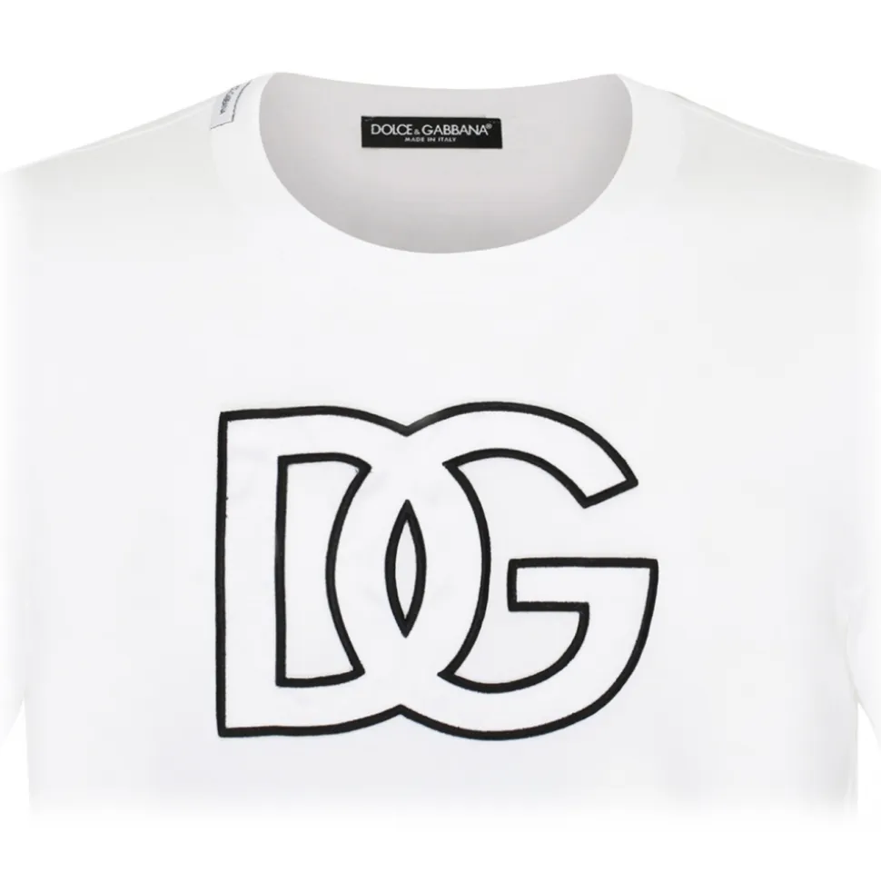 Dolce & Gabbana White Cotton Logo Monogram Print T-Shirt. White cotton t-shirt, signature DG monogram print, short sleeves, drop shoulder, crew neck, straight hem.