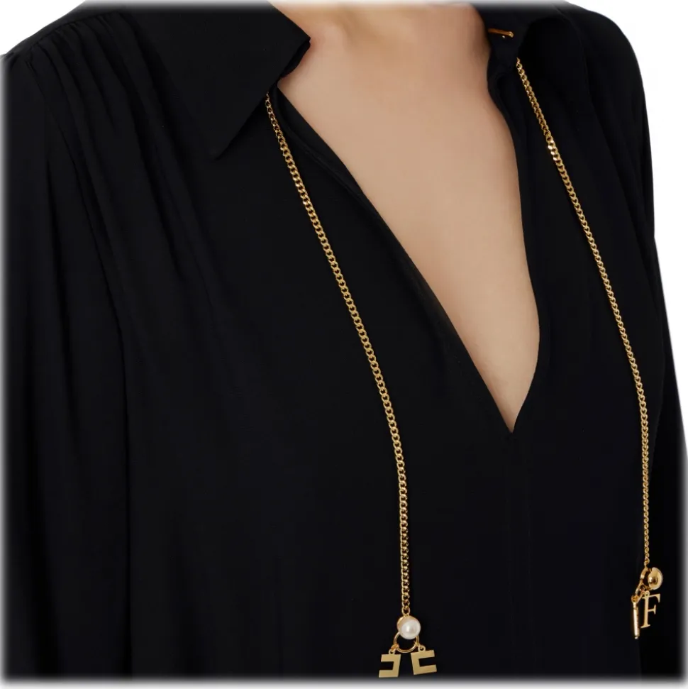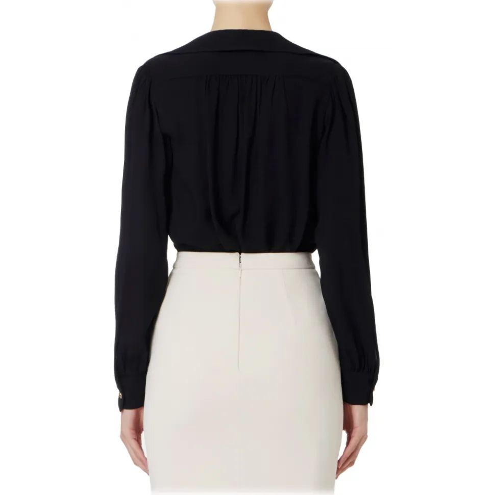 Elisabetta Franchi – Blouse with Chain Detail – Black – Shirt – Made in Italy – Luxury Exclusive Collection