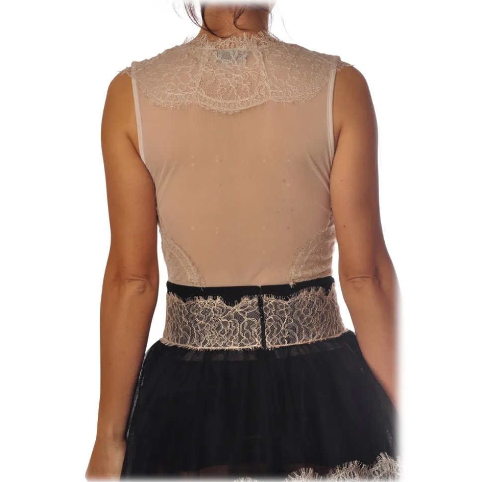 Elisabetta Franchi – Body with Back in Tulle – Vanilla – Top – Made in Italy – Luxury Exclusive Collection