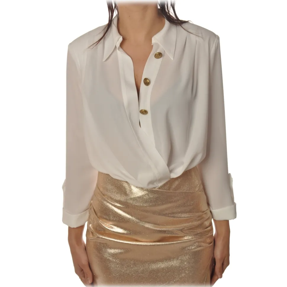 Elisabetta Franchi – Body with Long Sleeve – White – Shirt – Made in Italy – Luxury Exclusive Collection