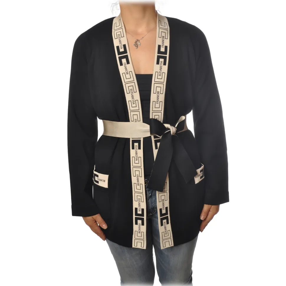 Elisabetta Franchi – Cardigan with Logoed Edges – Black – Pullover – Made in Italy – Luxury Exclusive Collection