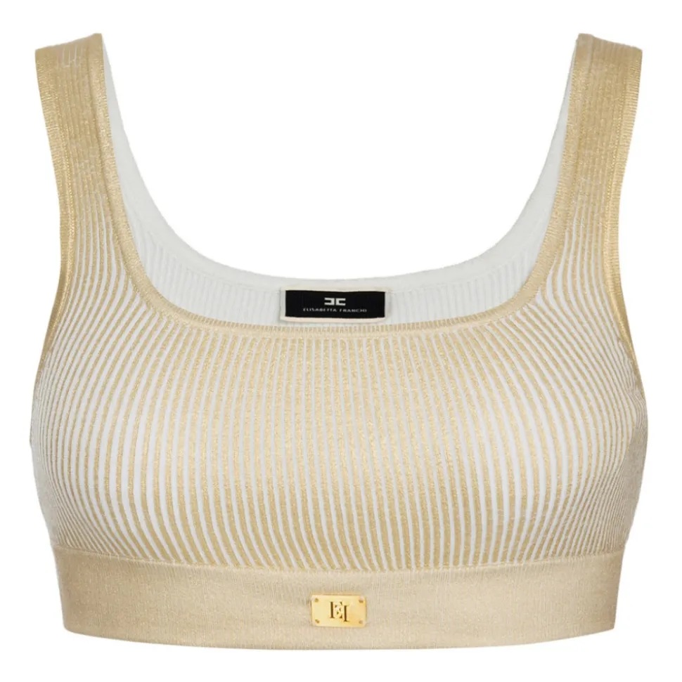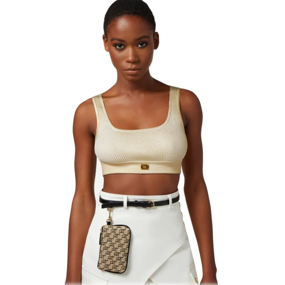 Elisabetta Franchi – Coated Crop Top – Gold – Top – Made in Italy – Luxury Exclusive Collection