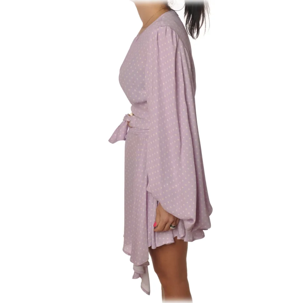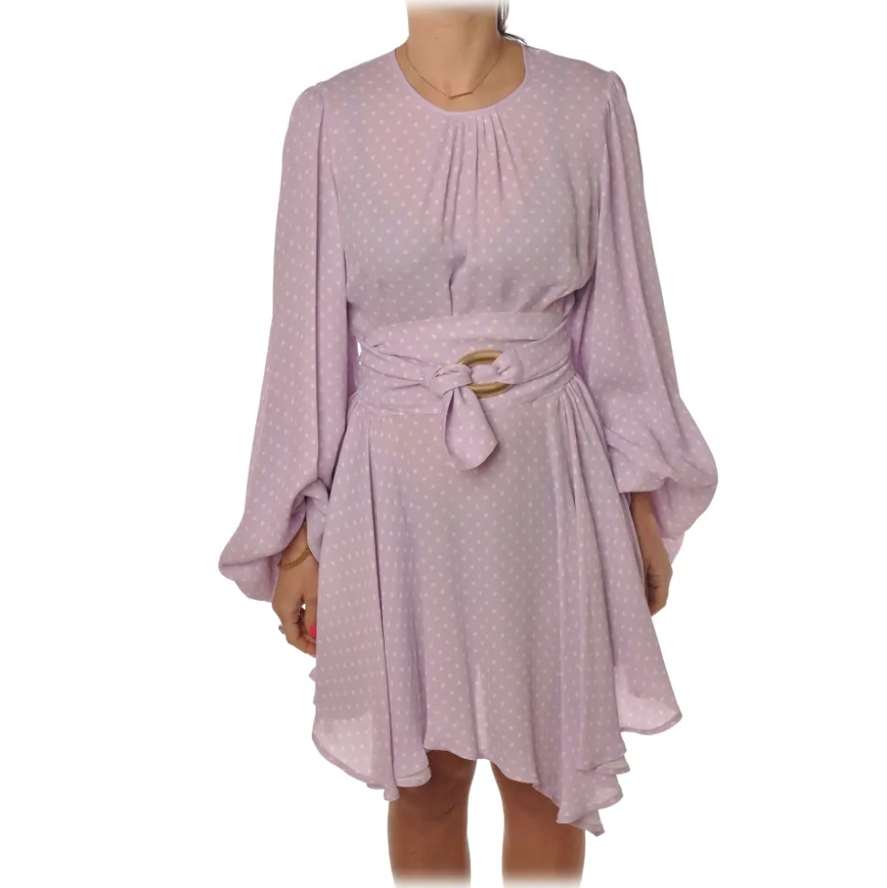 Elisabetta Franchi dress, long-sleeved crew-neck model, in polka dot pattern with asymmetrical length.