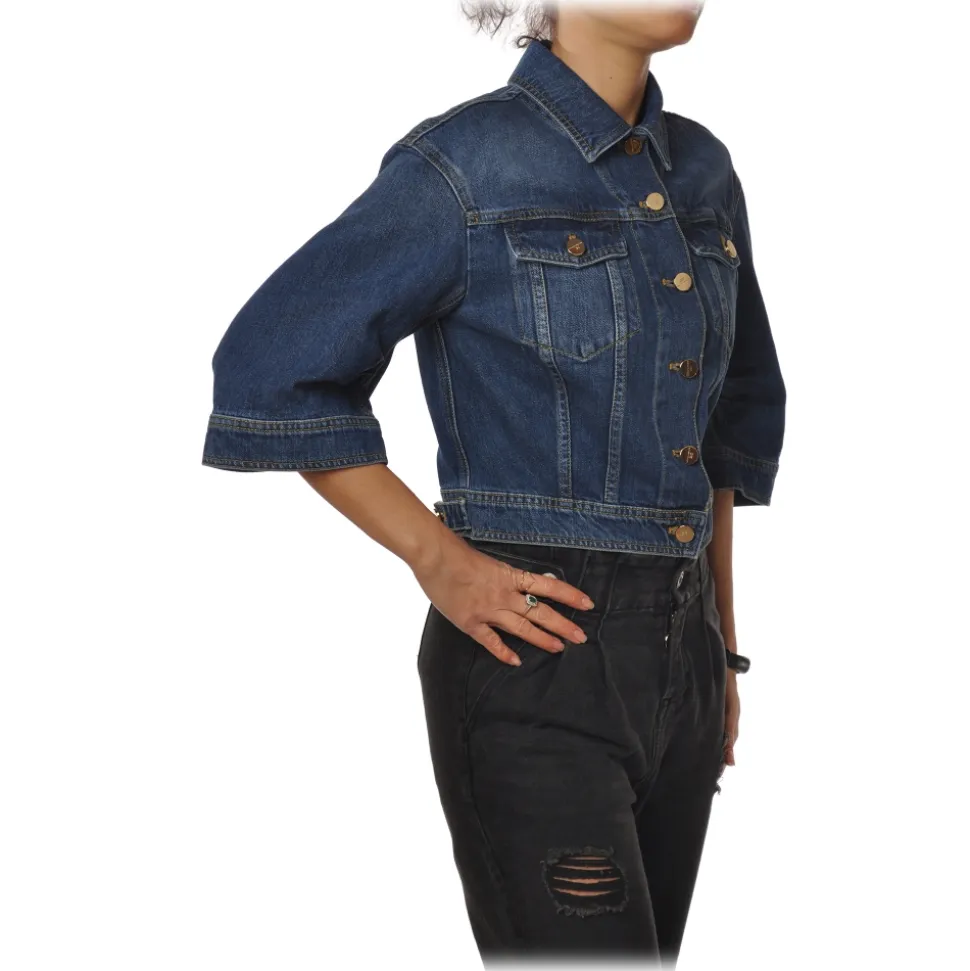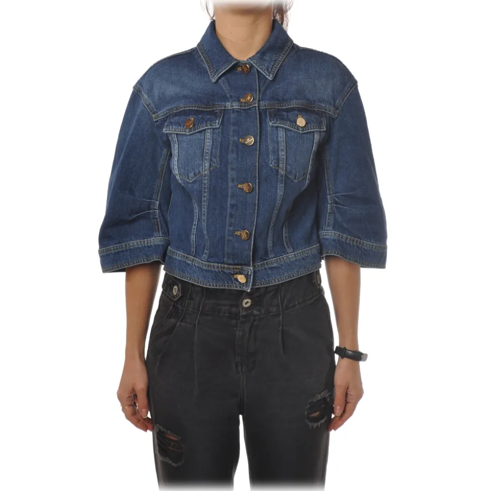 Elisabetta Franchi – Denim Jacket with Logo – Blue – Jacket – Made in Italy – Luxury Exclusive Collection