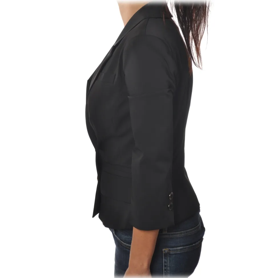 Elisabetta Franchi – Double-Breasted Model with 3/4 Sleeve – Black – Jacket – Made in Italy – Luxury Exclusive Collection
