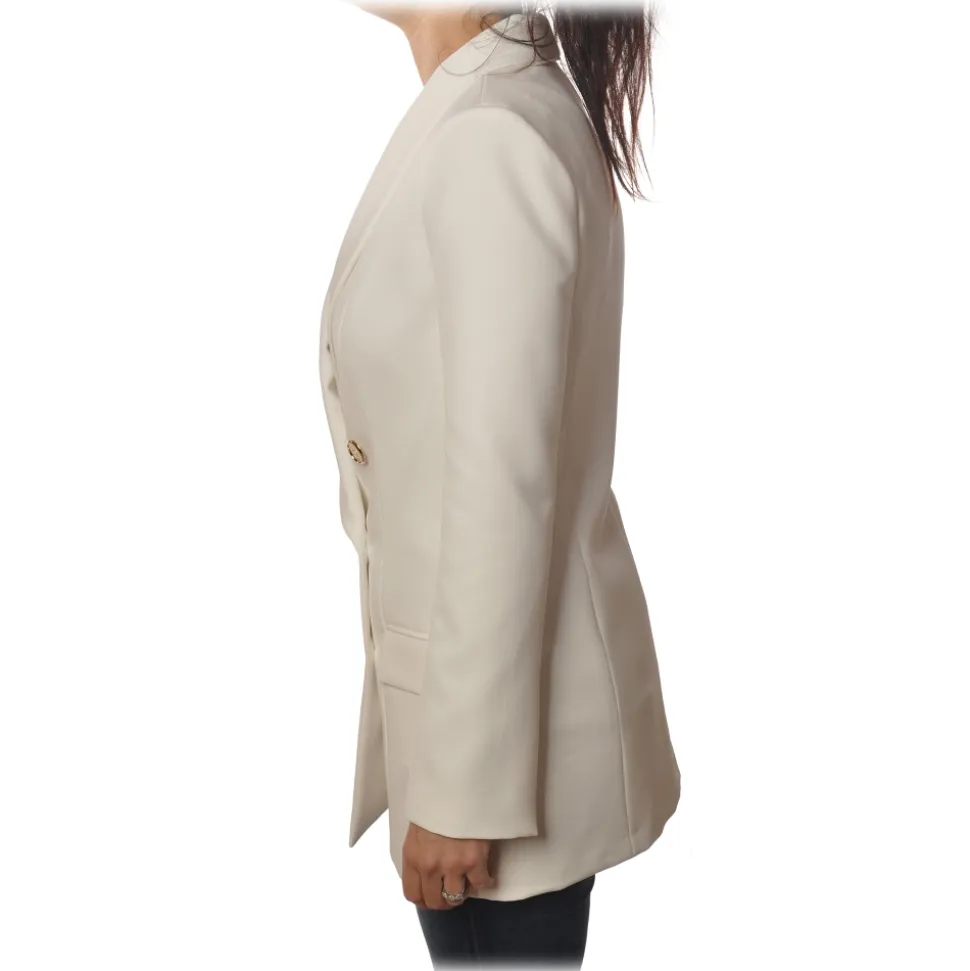 Elisabetta Franchi – Double-Breasted Model with Long Sleeve – White – Jacket – Made in Italy – Luxury Exclusive Collection