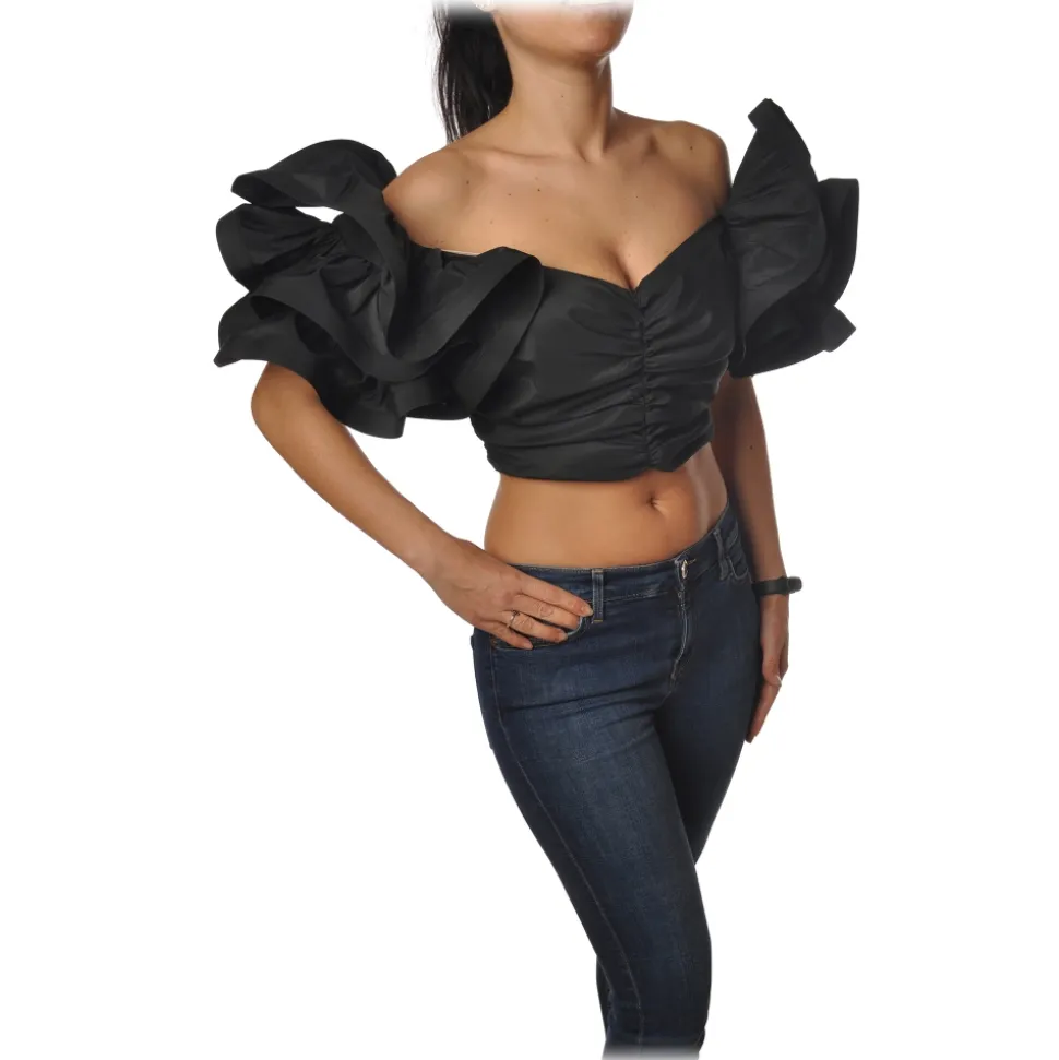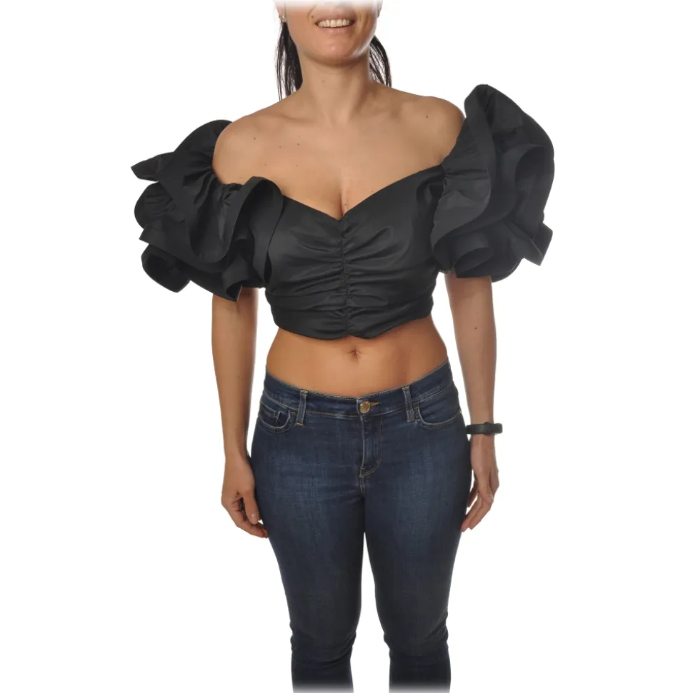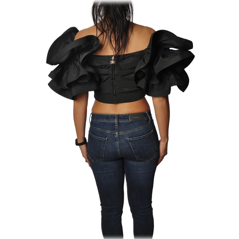 Elisabetta Franchi – Draped Crop Top – Black – Top – Made in Italy – Luxury Exclusive Collection
